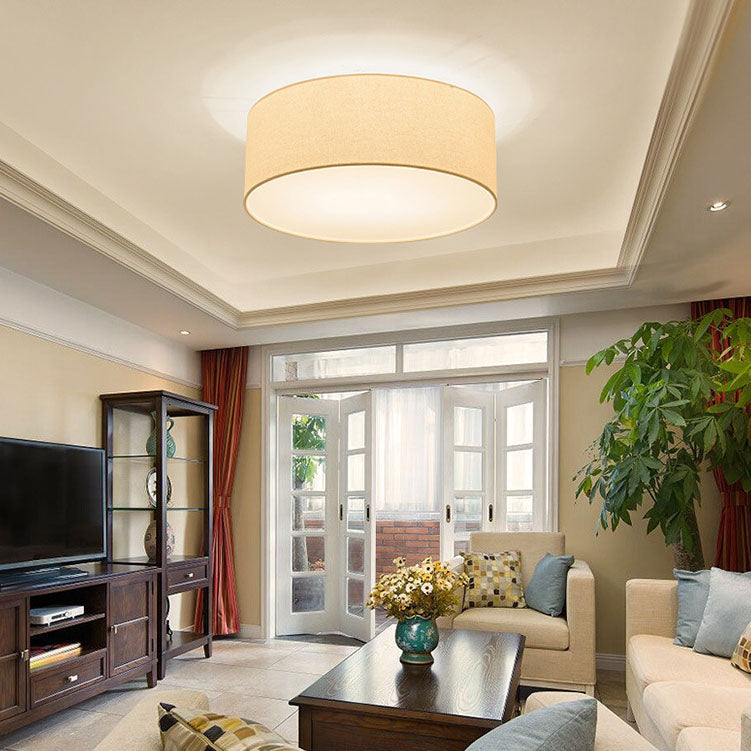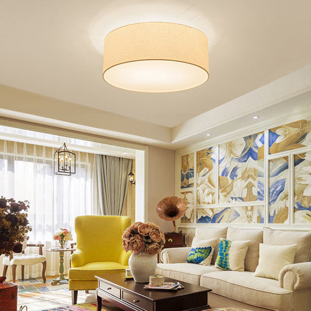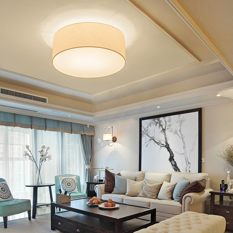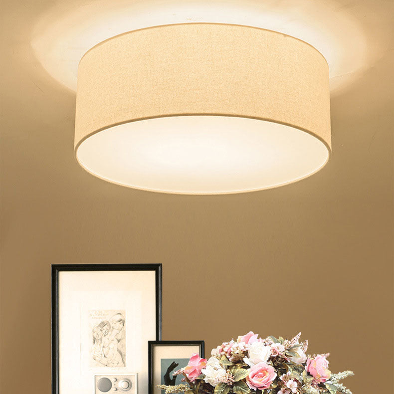 Nordic Minimalist Round Drum Fabric 3/5 Light Flush Mount Ceiling Light