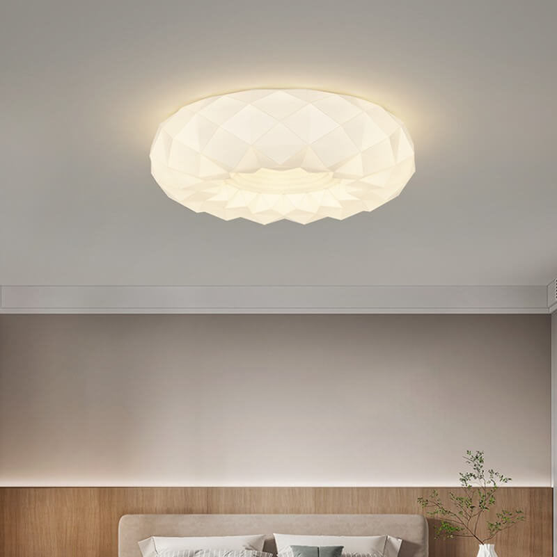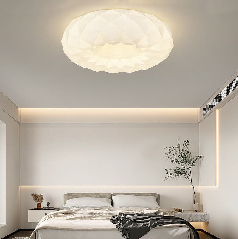 Nordic Minimalist White Round Geometric Texture LED Flush Mount Ceiling Light
