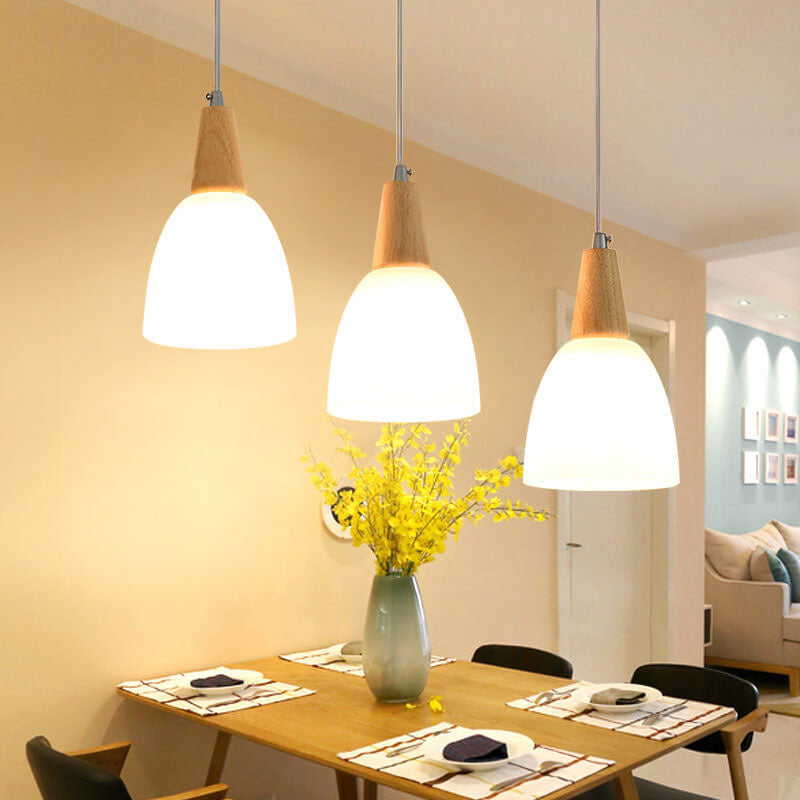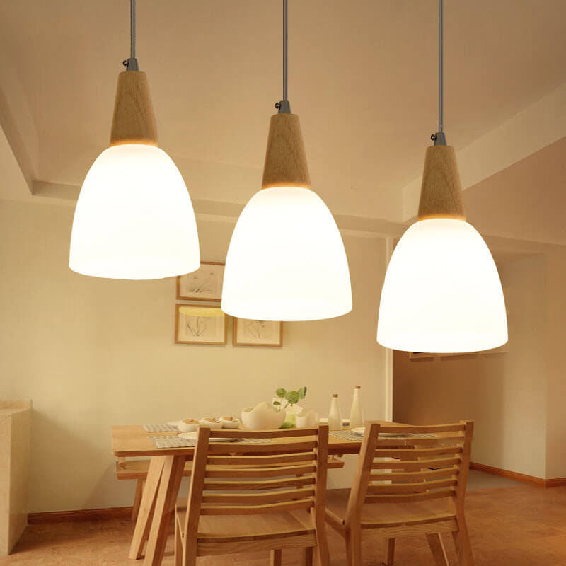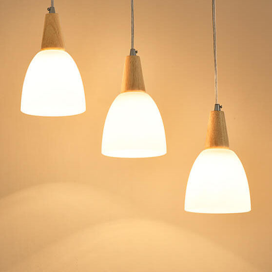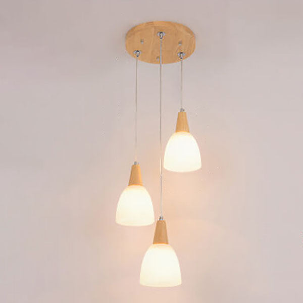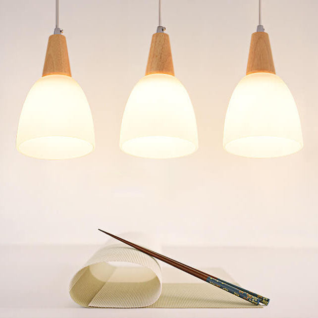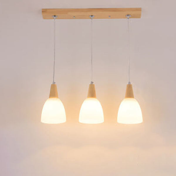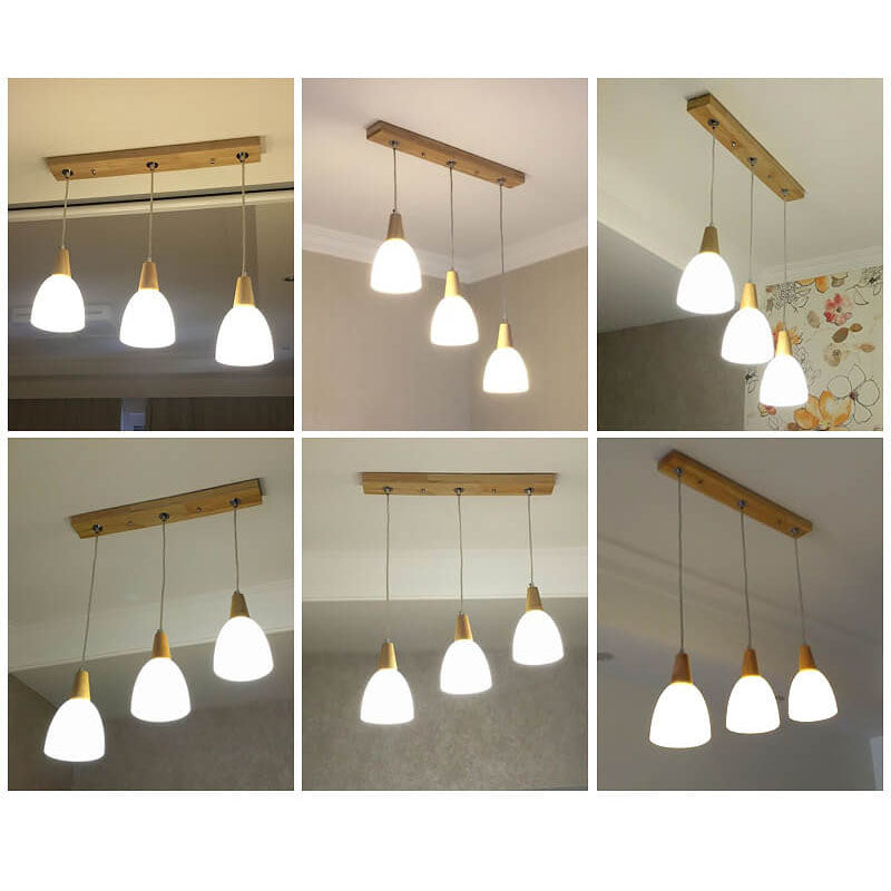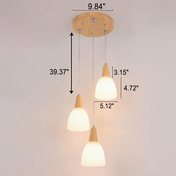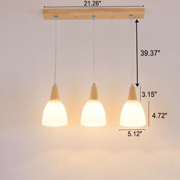 Nordic Simple Glass Cone Jar Wood 3-Light Island Light Chandelier