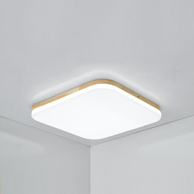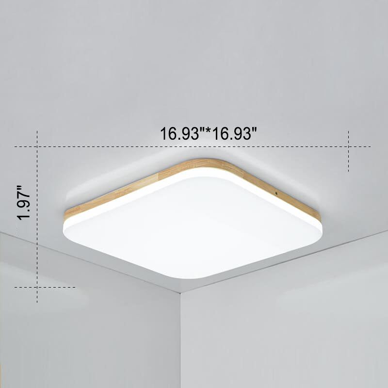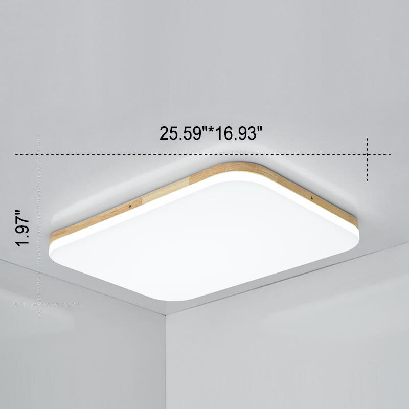 Nordic Simplicity Solid Wood Rectangular PVC LED Flush Mount Ceiling Light