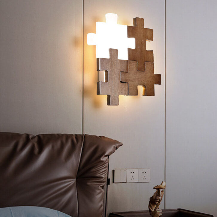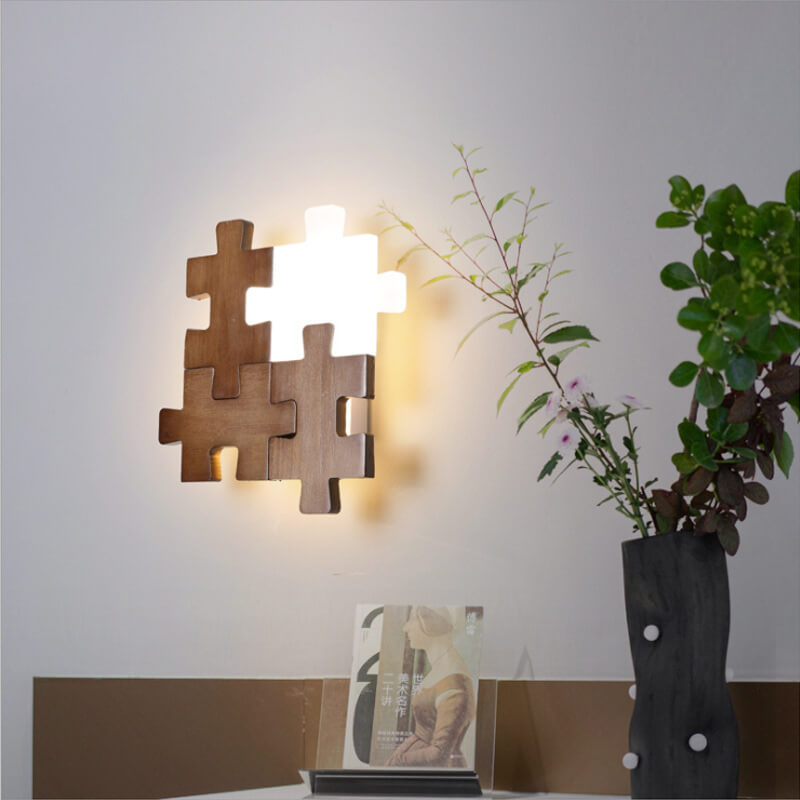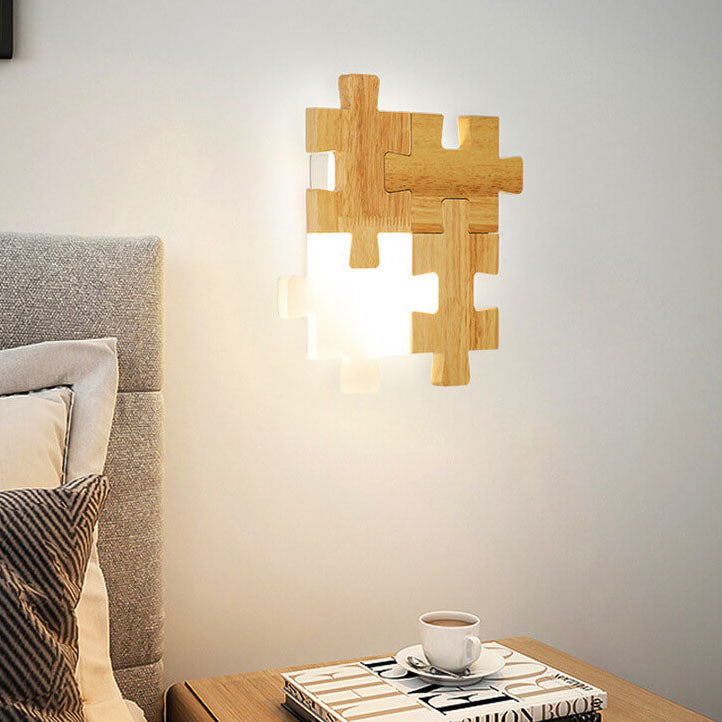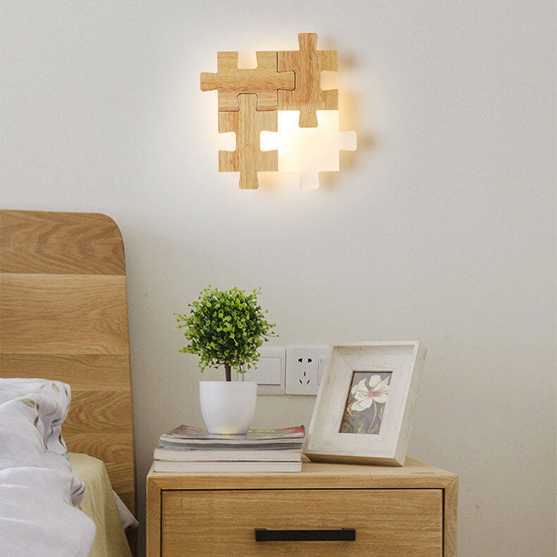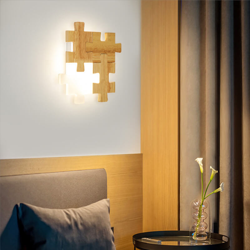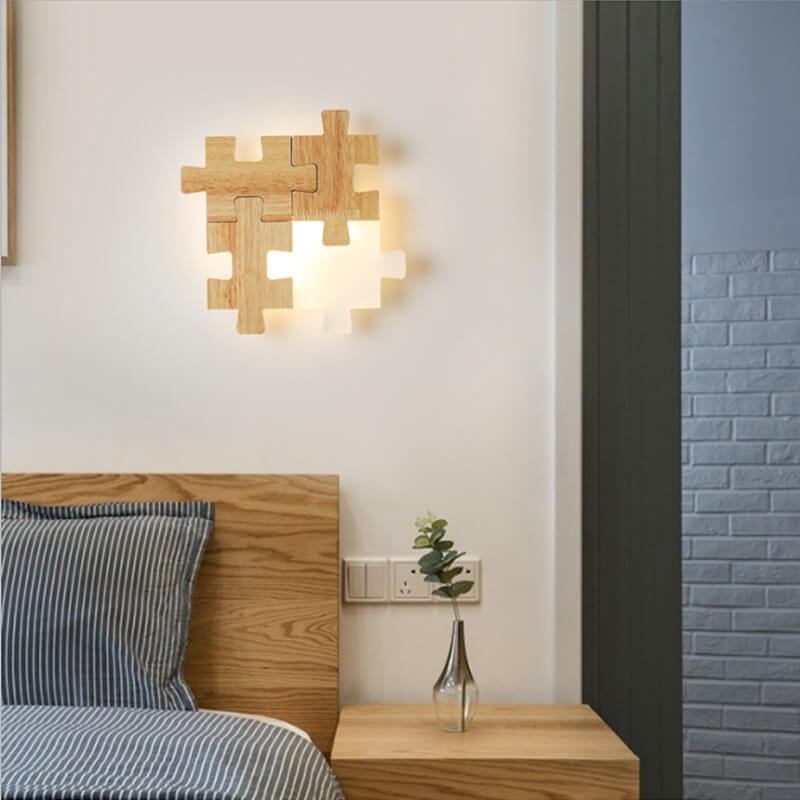 Nordic Wood Puzzles 1-Light LED Wall Sconce Lamp