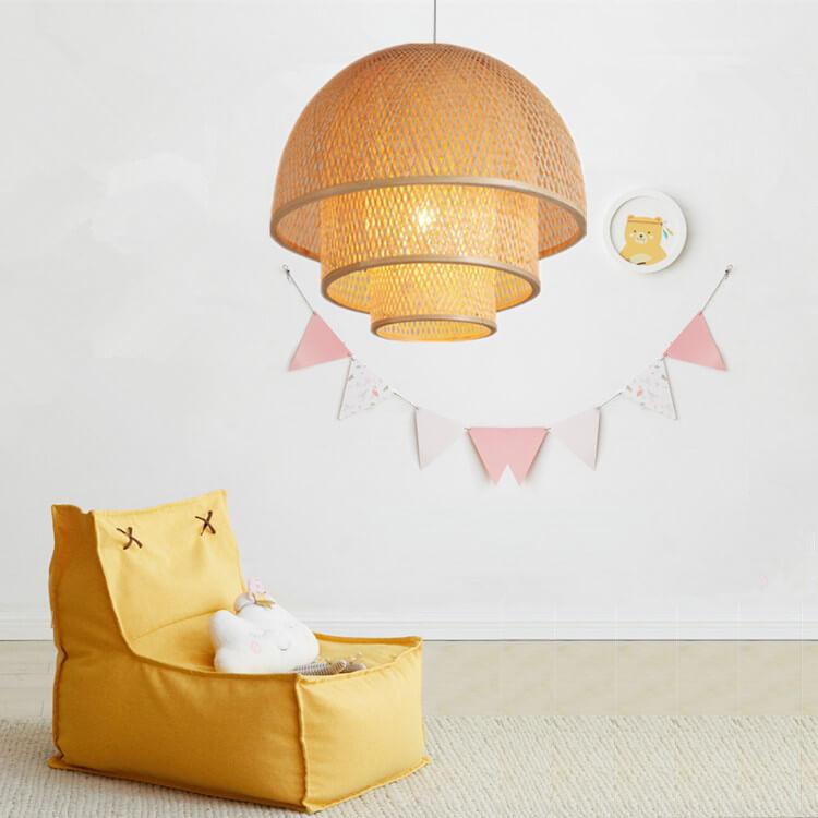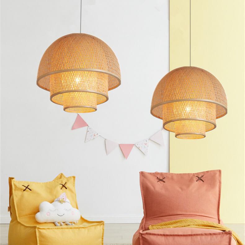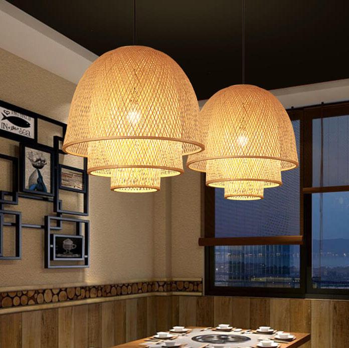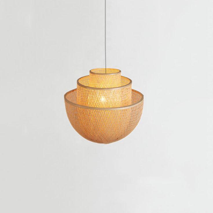 Rattan Weaving Three Layers Bowl Shape 1-Light Pendant Light