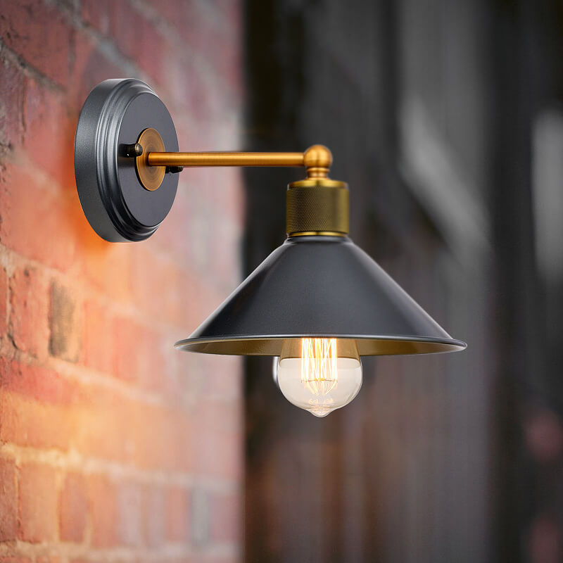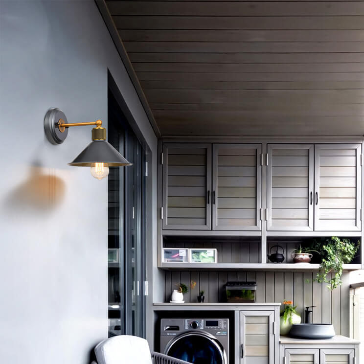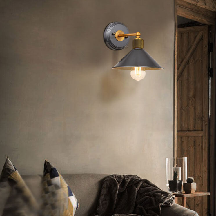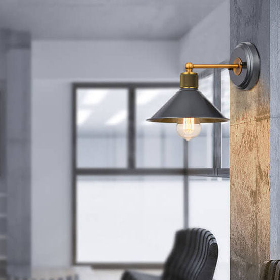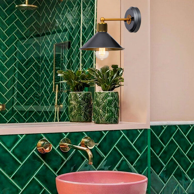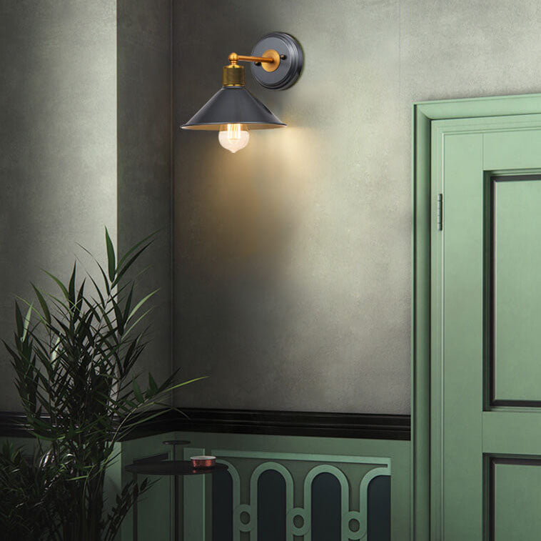 Retro Aluminum Umbrella Wrought Iron Lampshade 1-Light Wall Sconce Lamp