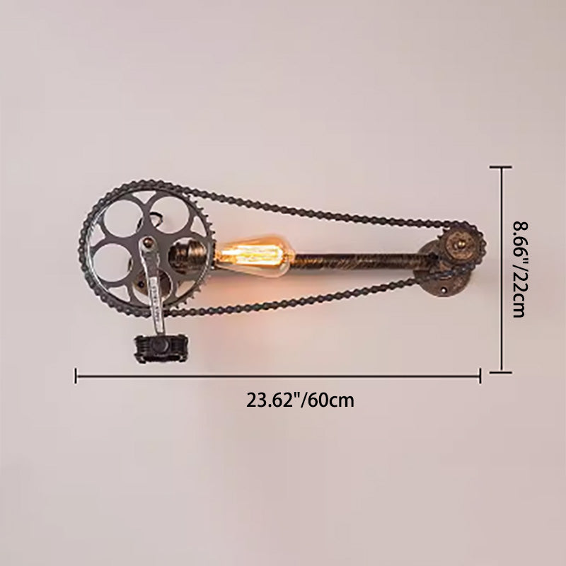 Retro Steampunk Gear Pedal Bicycle Metal Water Pipe 1-Light Wall Sconce Lamp