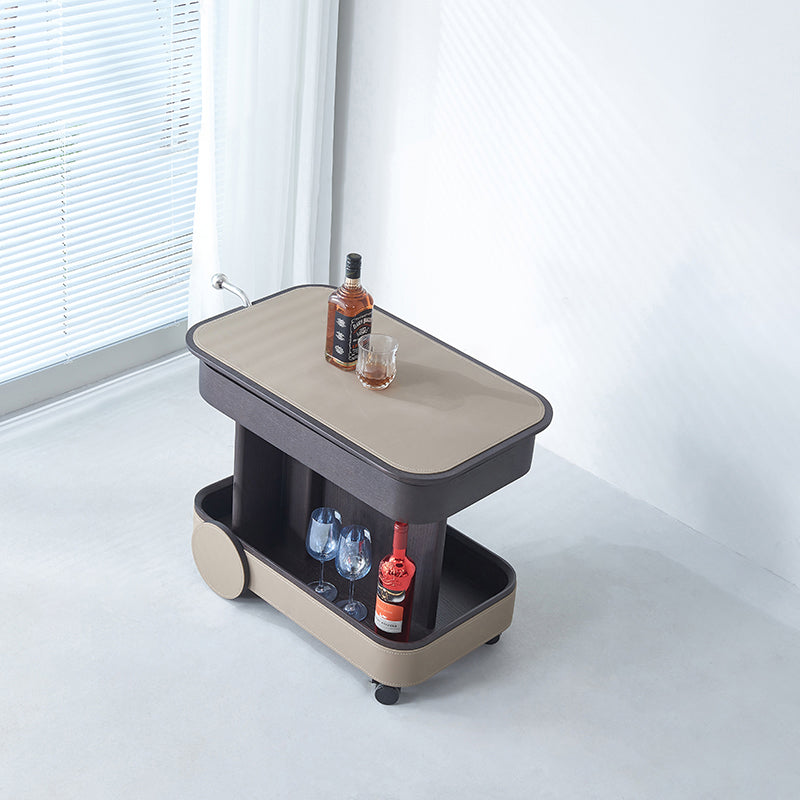 Rolling Adjustable Swivel Table Top Saddle Leather Side Table - Creative Multi-Tier Storage Trolley For Living Room