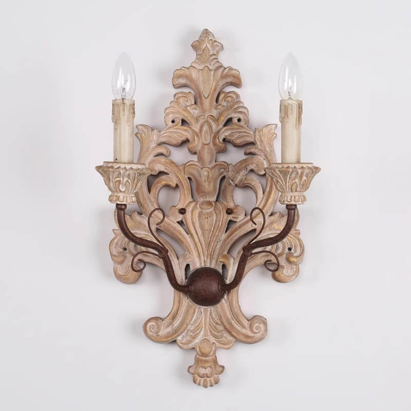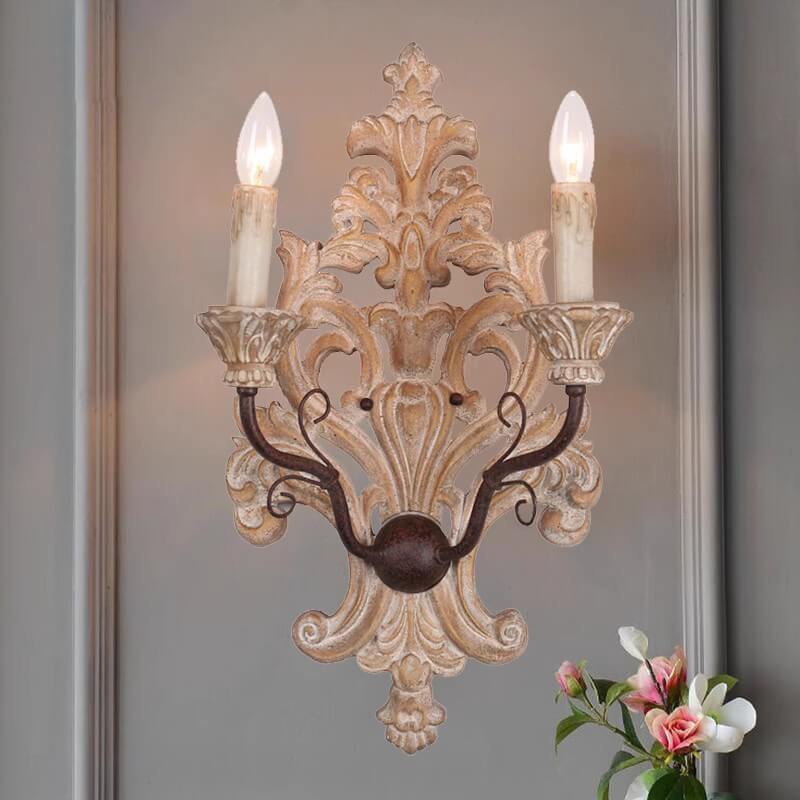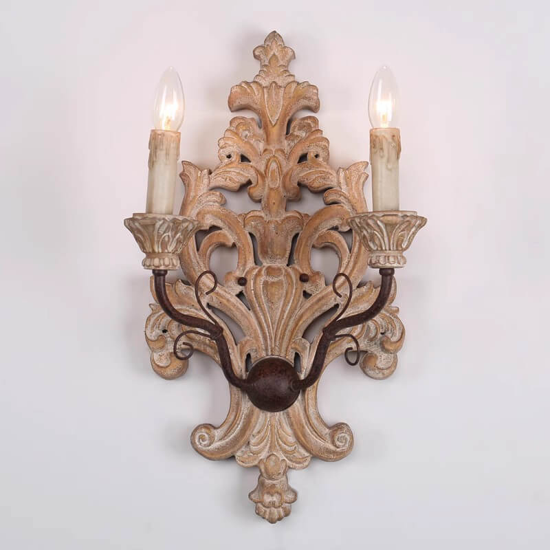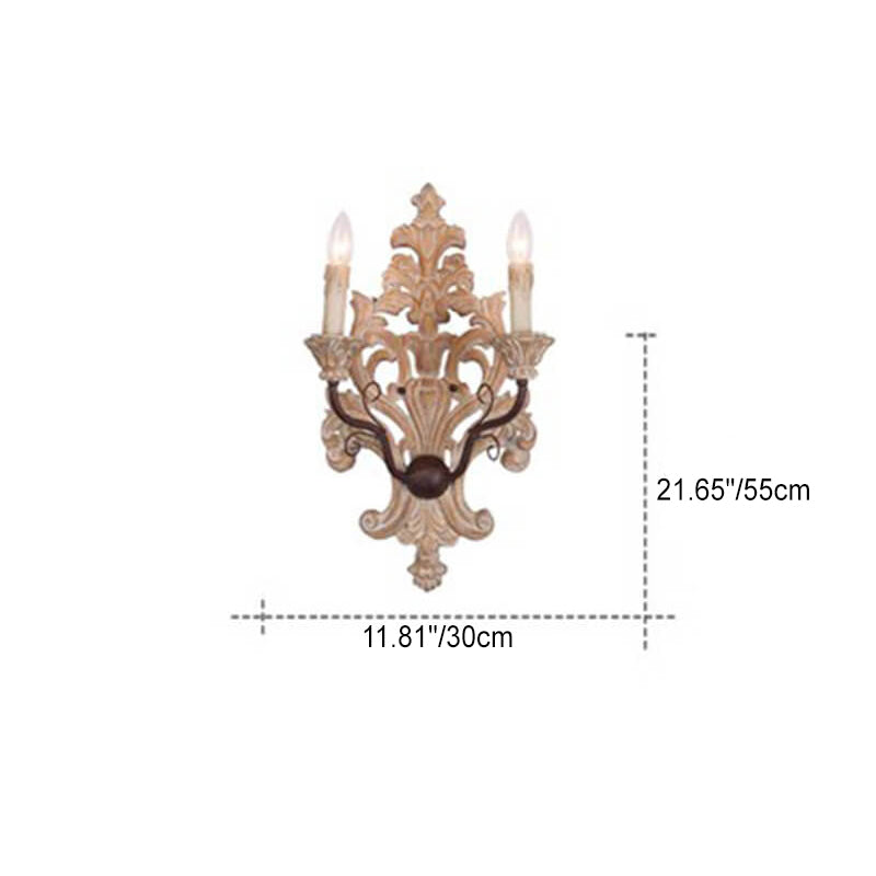 Rural Nostalgic Solid Wood Iron Double Head Candelabra 2-Light Wall Sconce Lamp