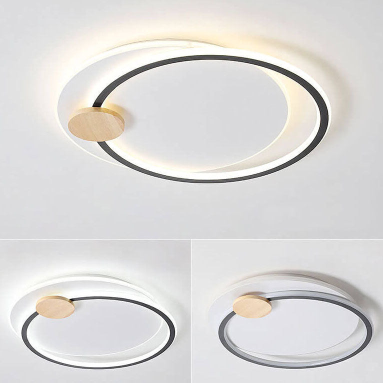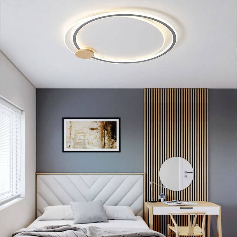 Scandinavian Minimalist Metal Wood Round LED Flush Mount Ceiling Light