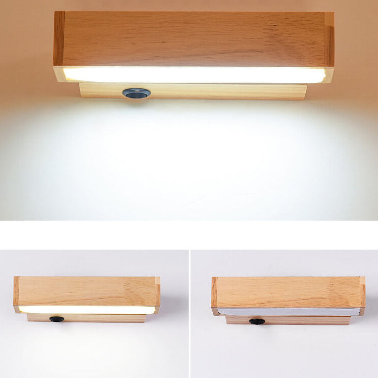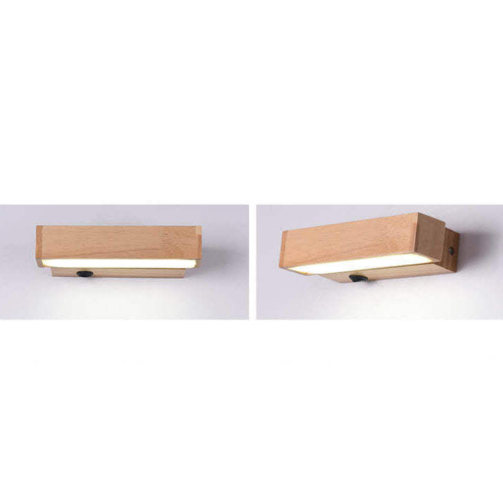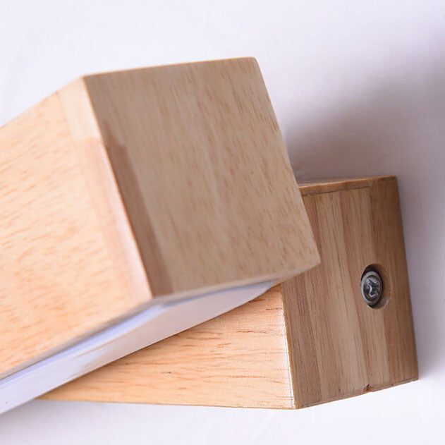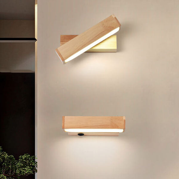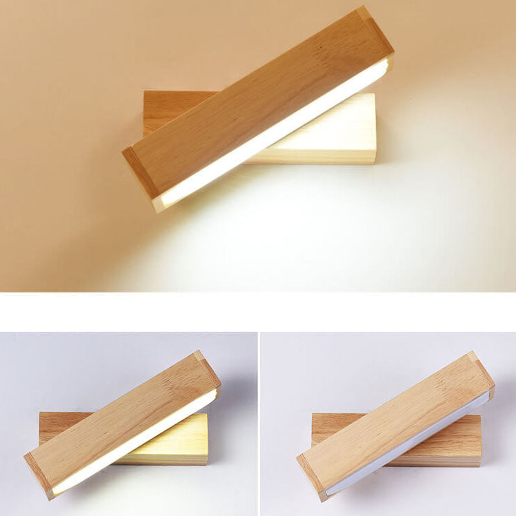 Simple Log Wooden Rectangular Rotatable LED Wall Sconce Lamp