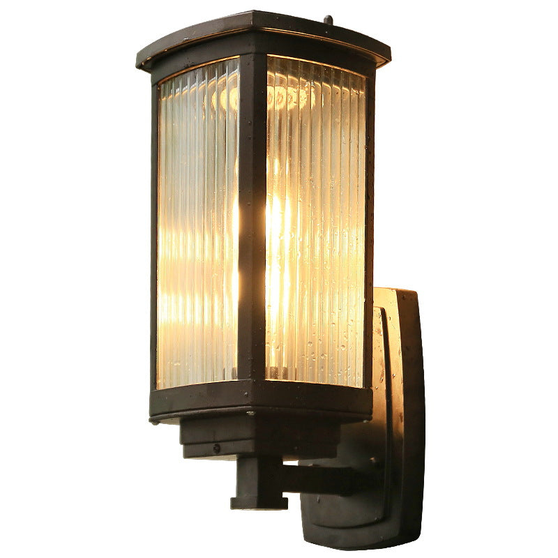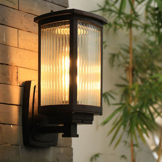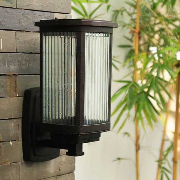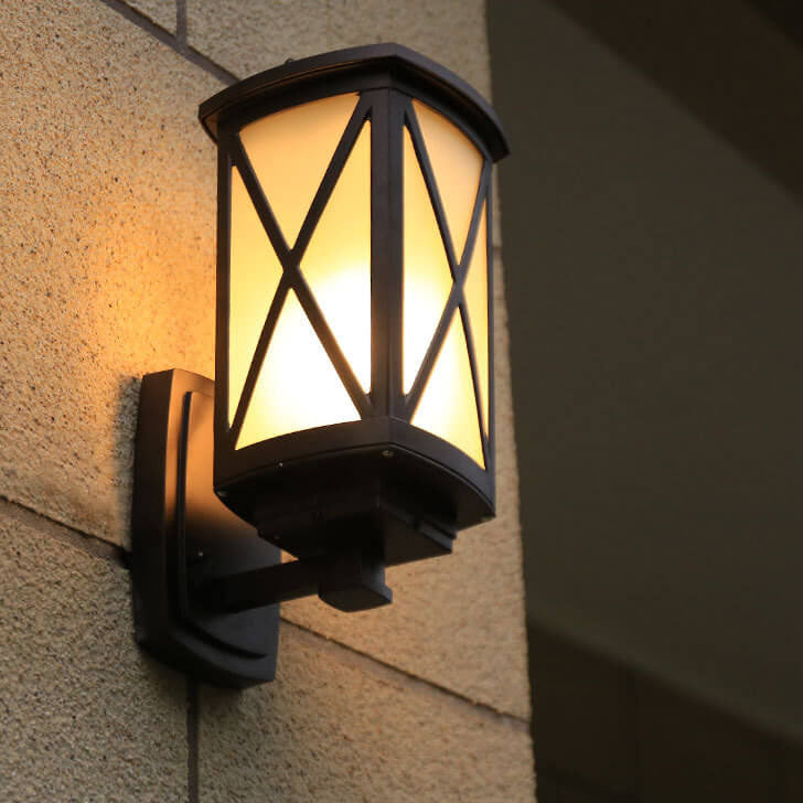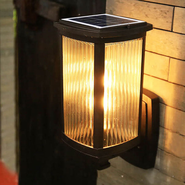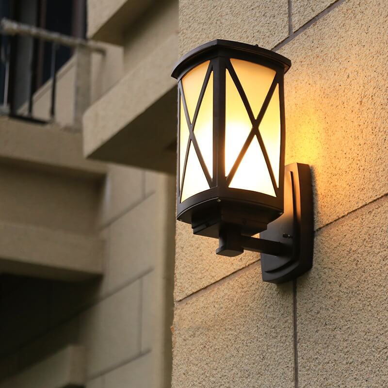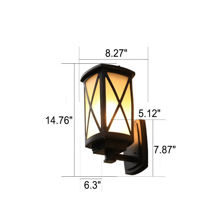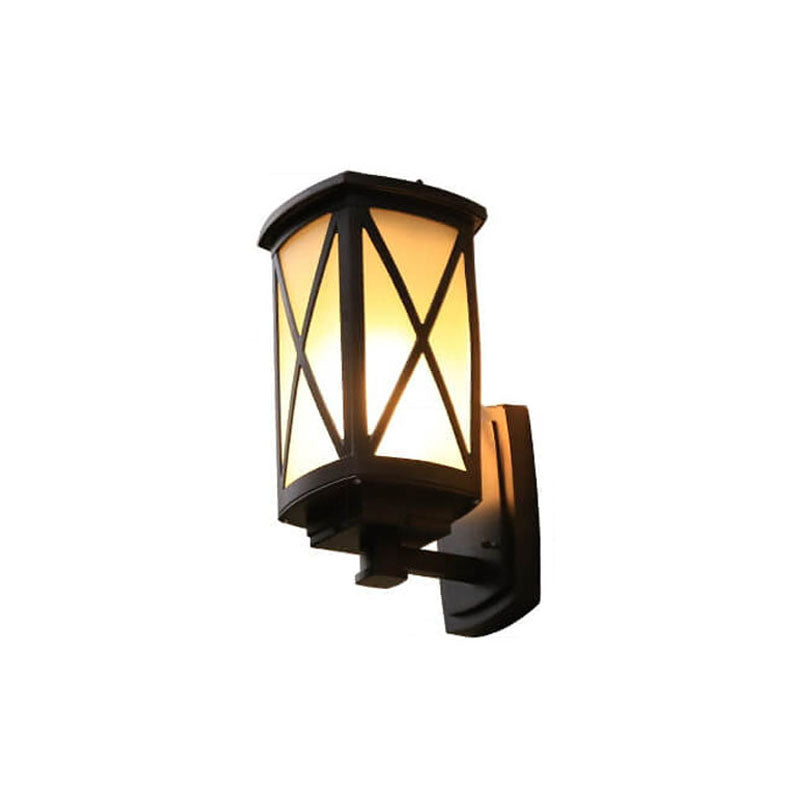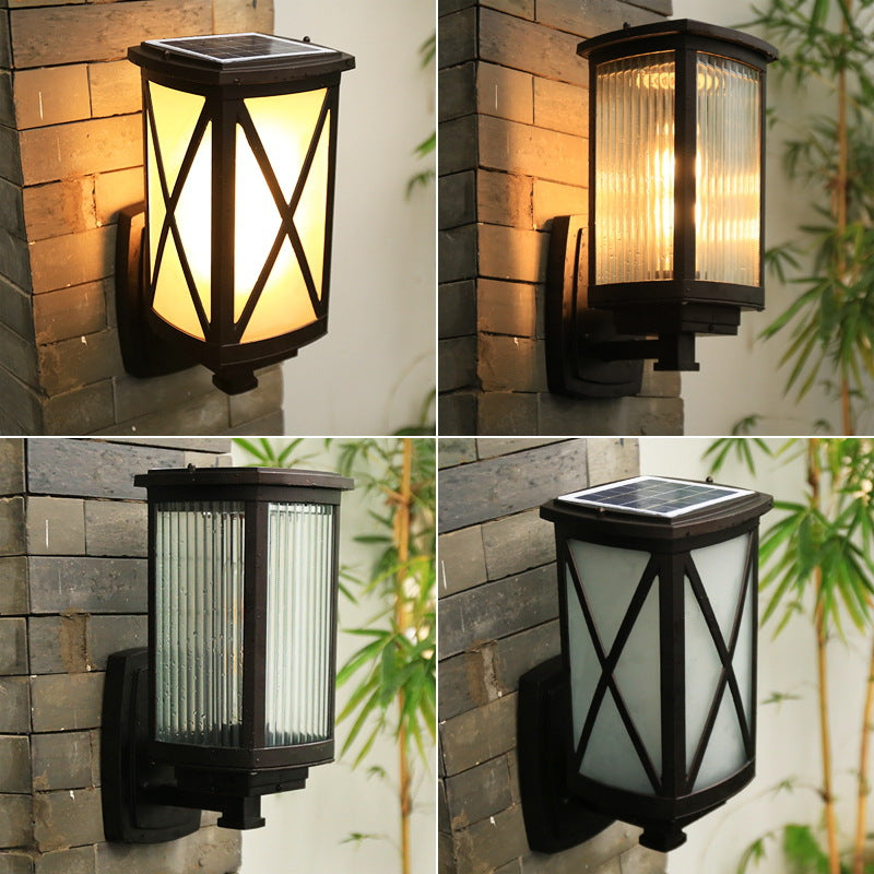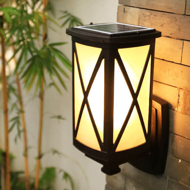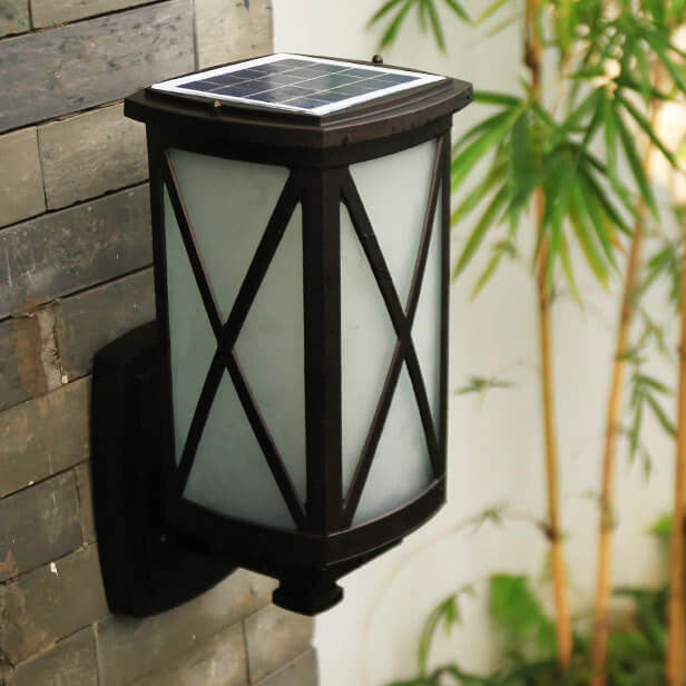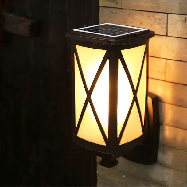 Solar Chinese Outdoor Square Column Cage 1-Light Wall Sconce Lamp
