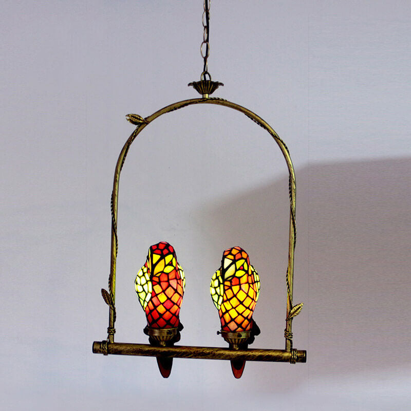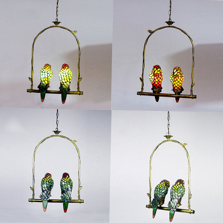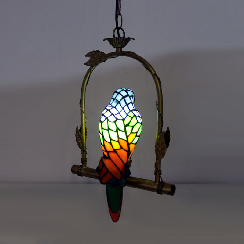Tiffany Chinese Vintage Glass Parrot LED Pendant Light