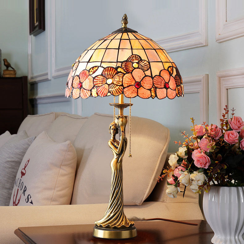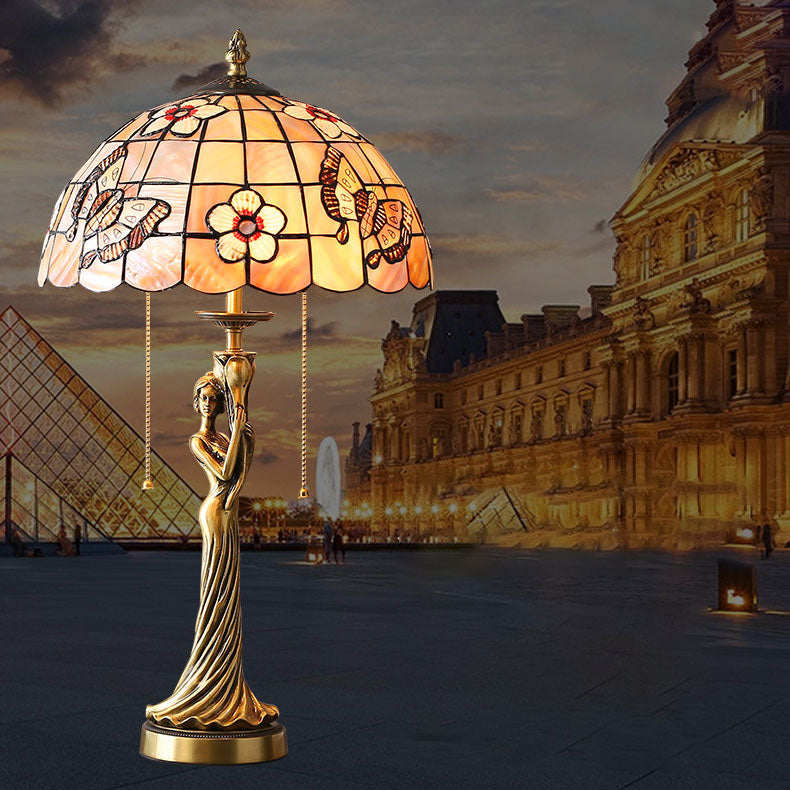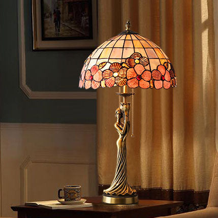 Tiffany Copper Goddess Statue Base Shell Decoration 2-Light Table Lamp