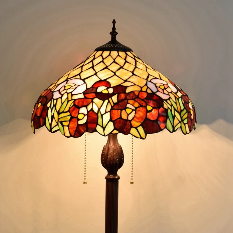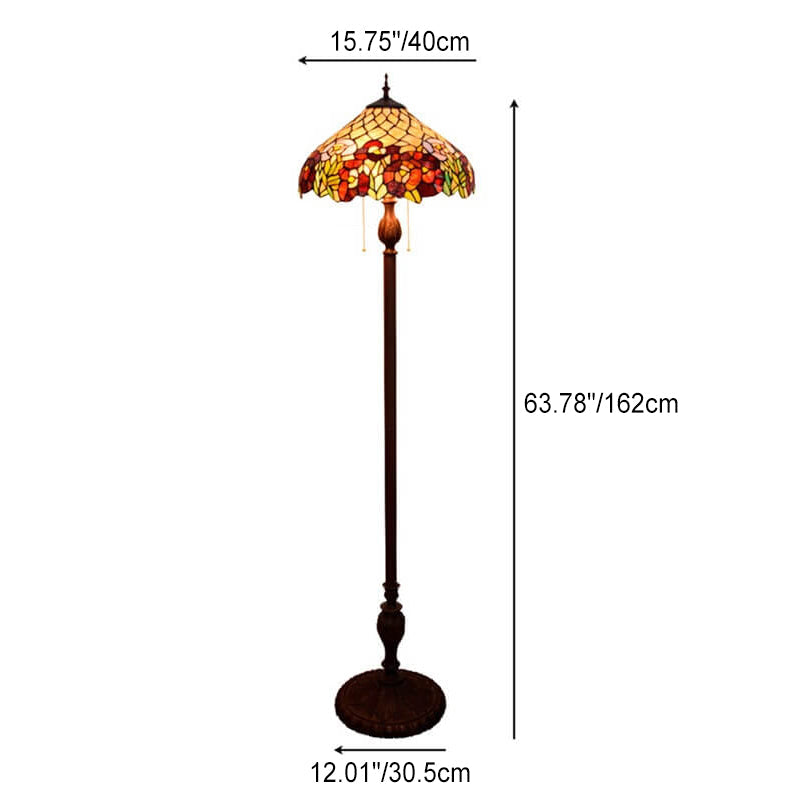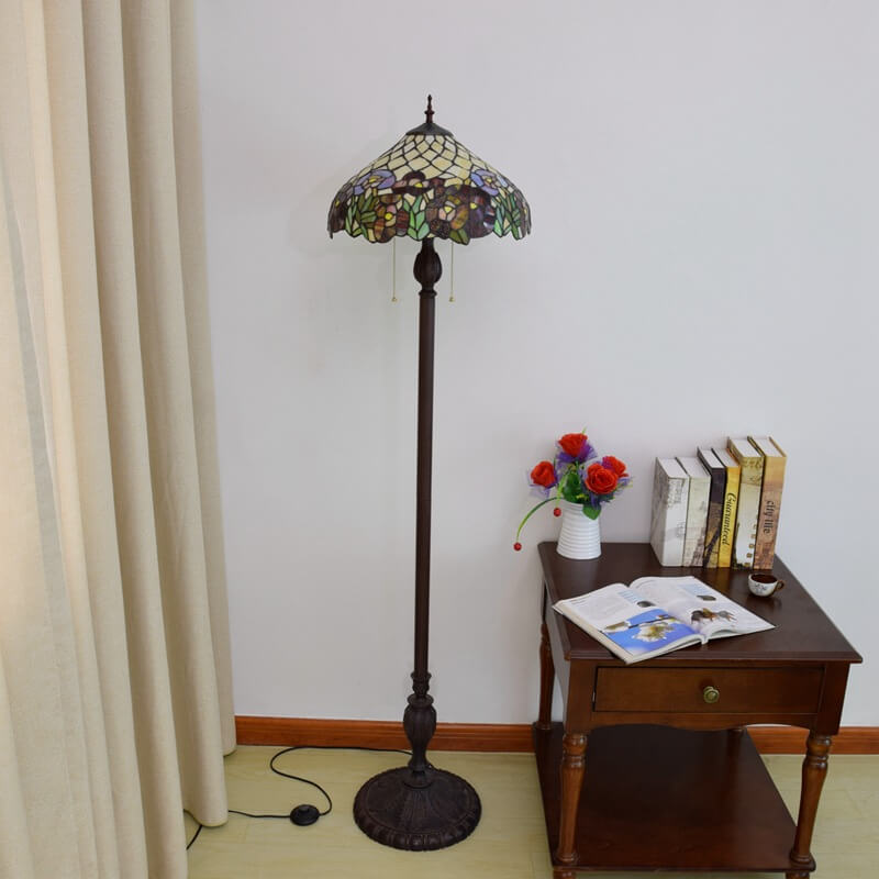 Tiffany Decorative Umbrella Iron Resin Stained Glass 3-Light Standing Floor Lamp