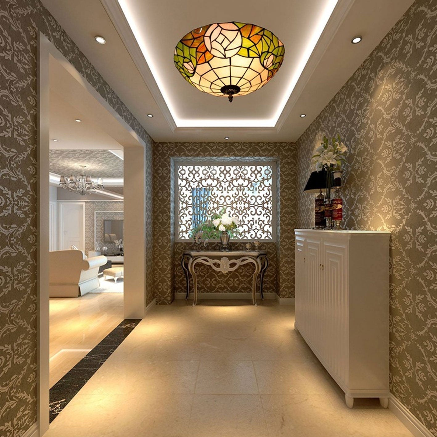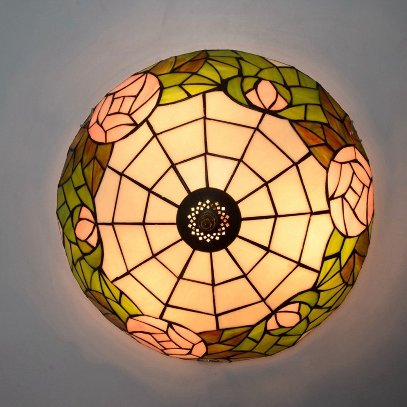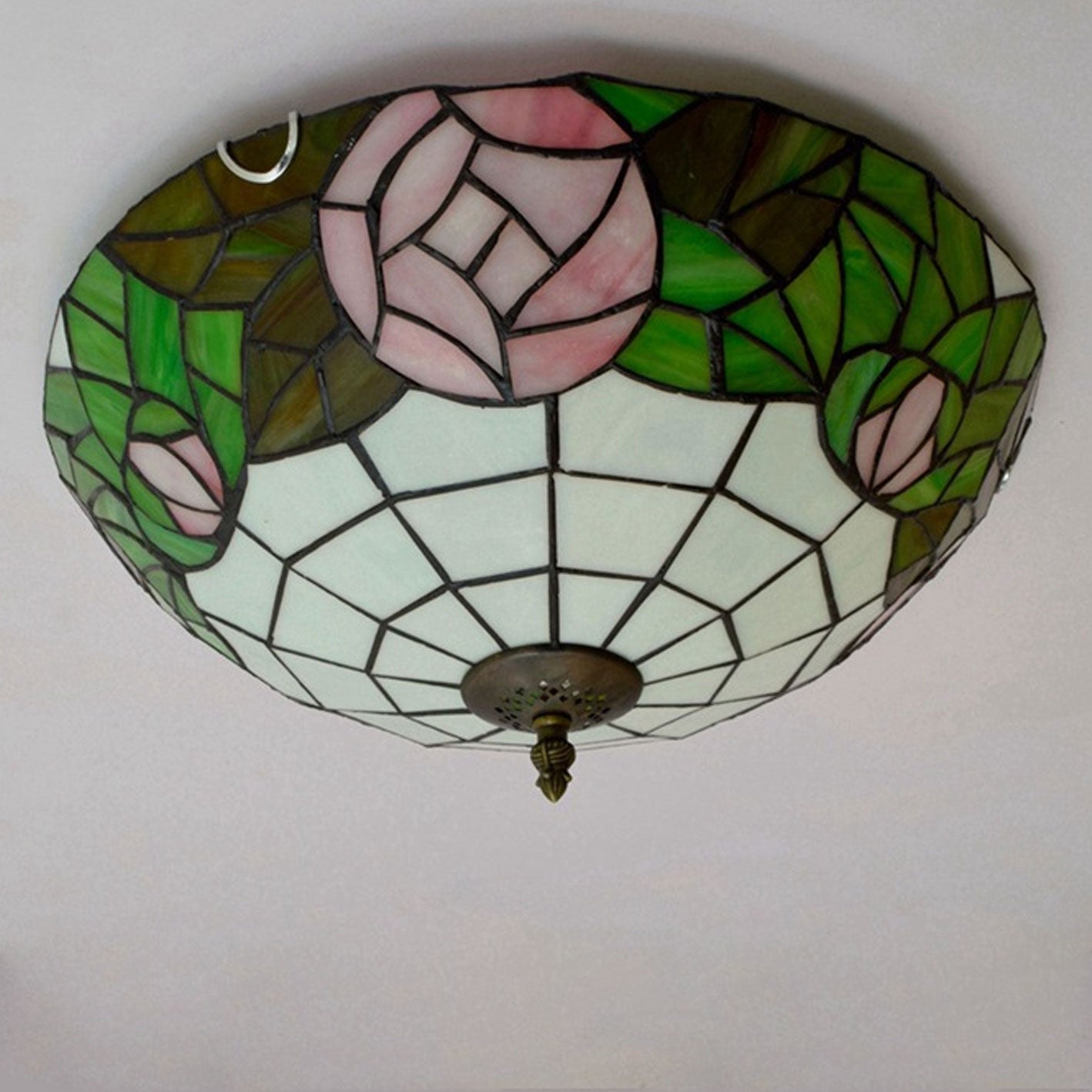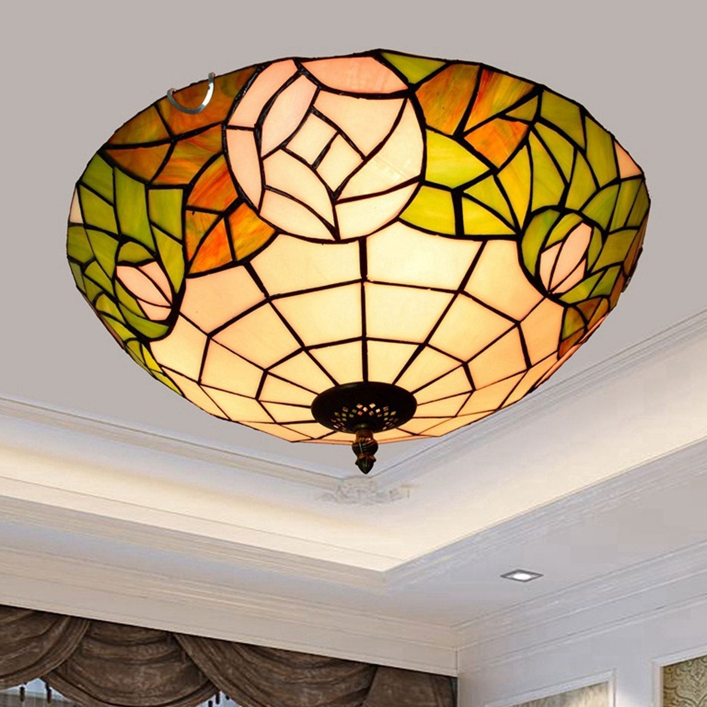 Tiffany European Retro Creative Stained Glass Rose Pattern Design 3-Light Flush Mount Light
