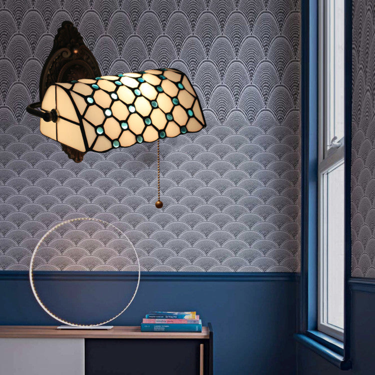 Tiffany Lucite Beads Stained Glass 1-Light Wall Sconce Lamp
