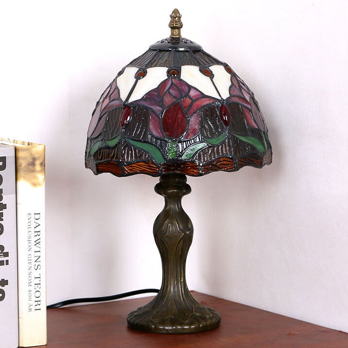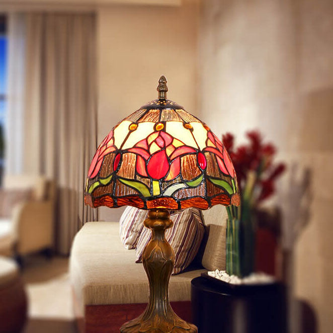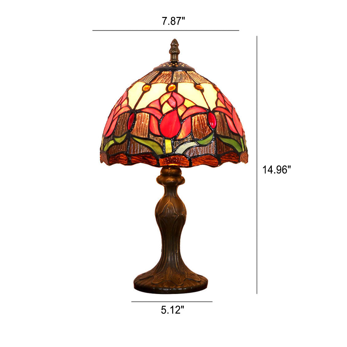 Tiffany Rustic Tulip Stained Glass Round 1-Light Table Lamp