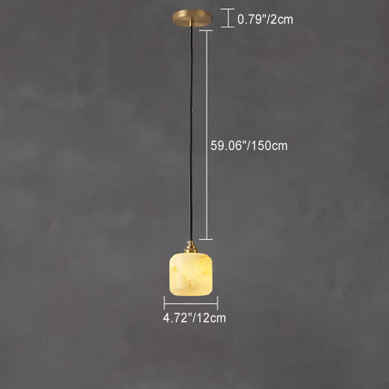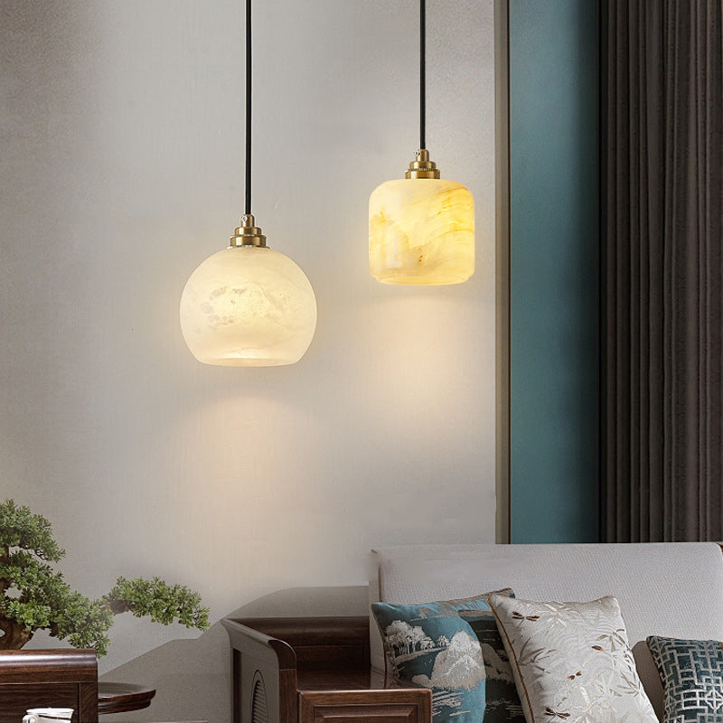 Traditional Chinese Ball Copper Jade 1-Light Pendant Light For Living Room