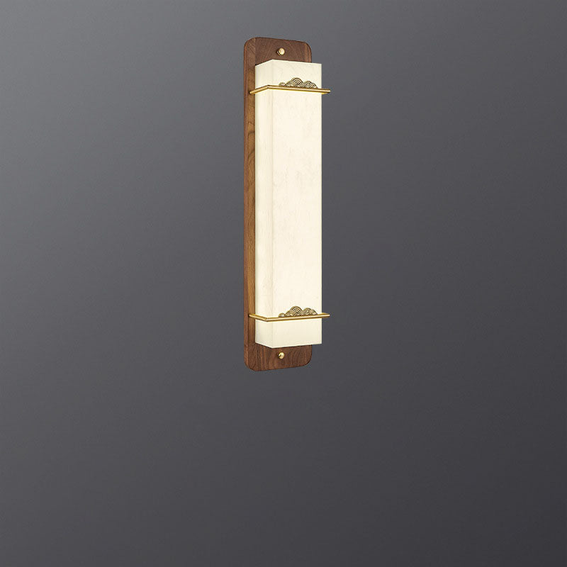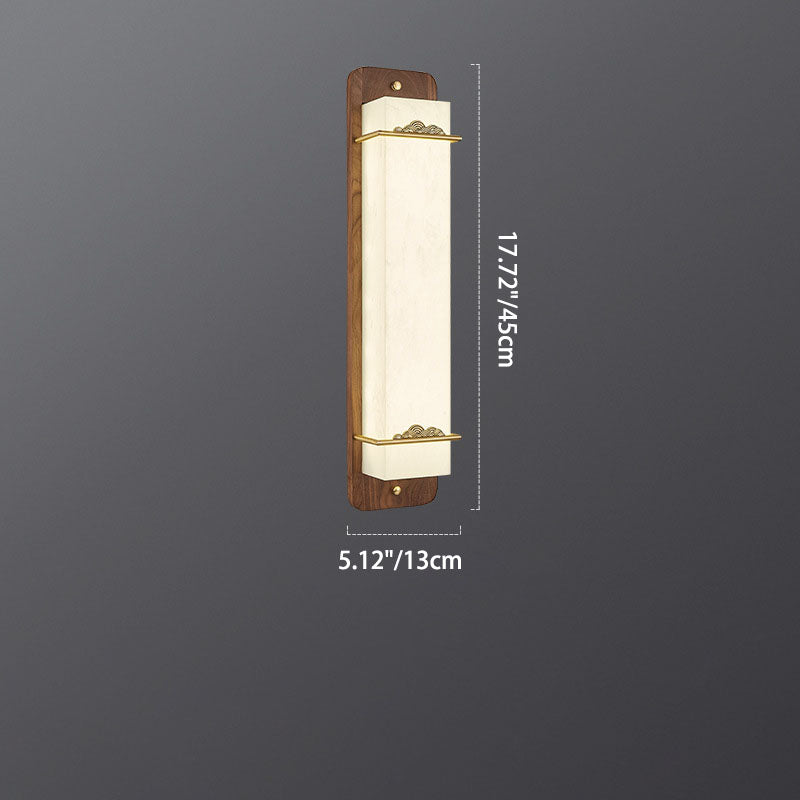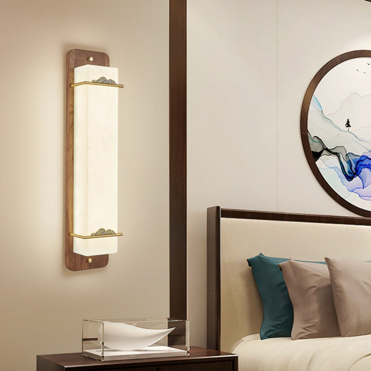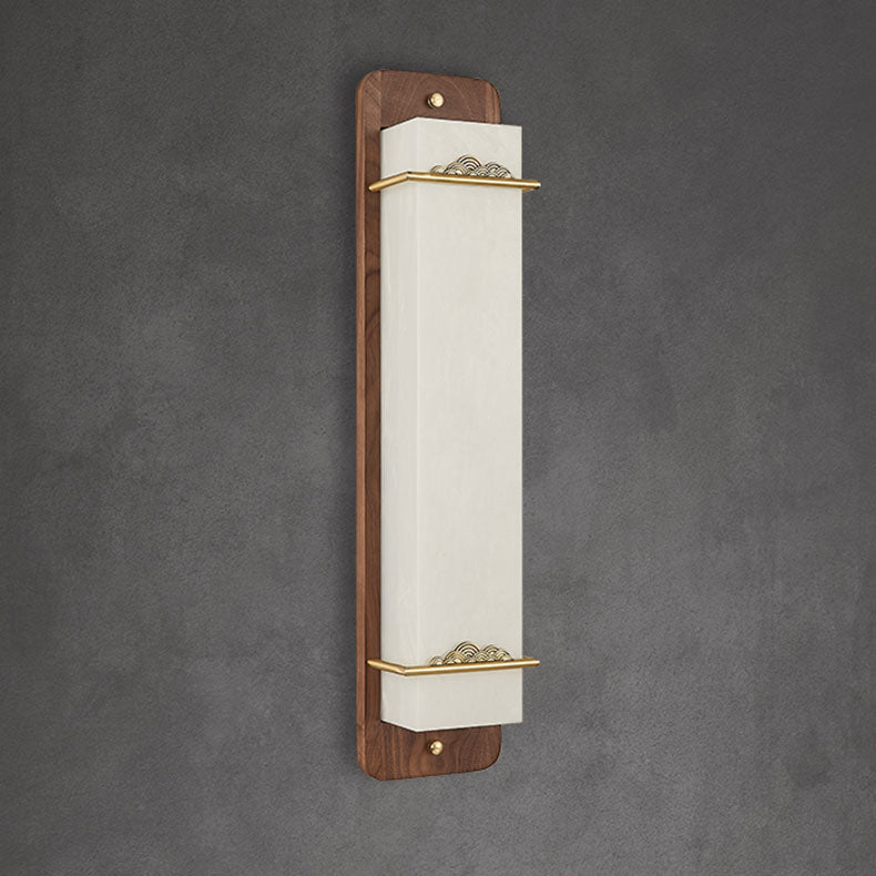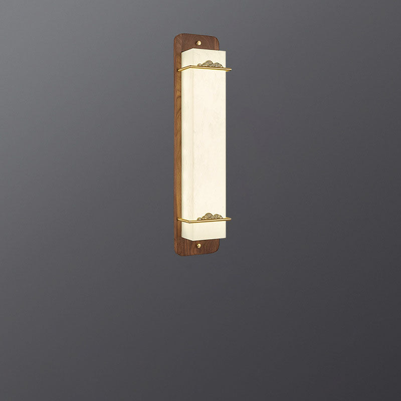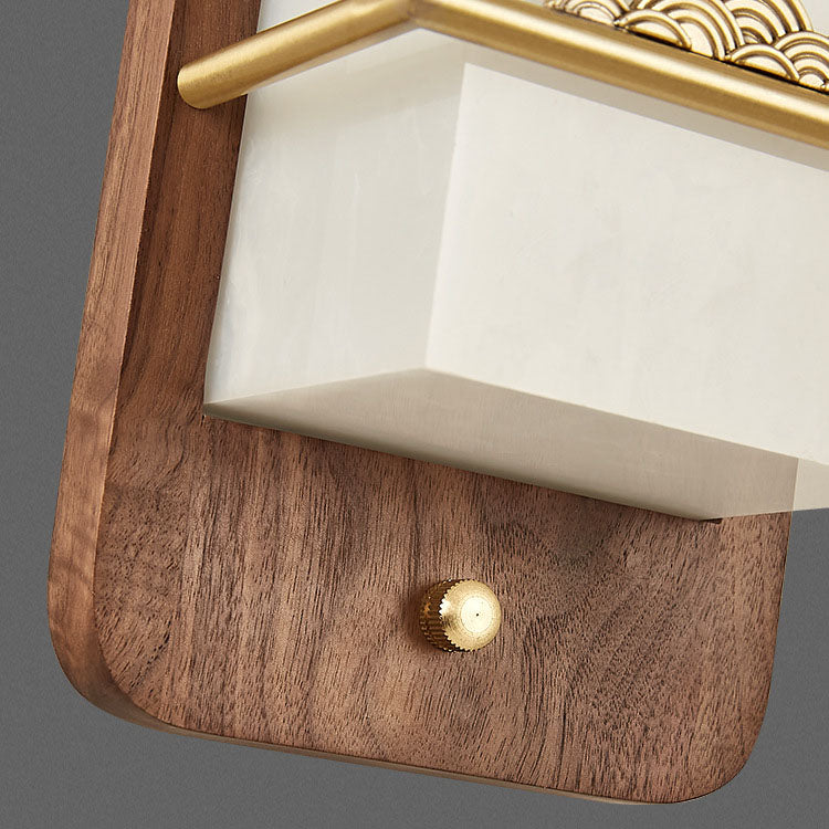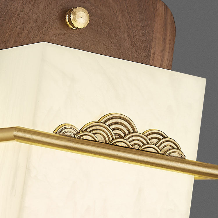 Traditional Chinese Brass Walnut Acrylic Rectangular Cloud LED Wall Sconce Lamp For Bedside