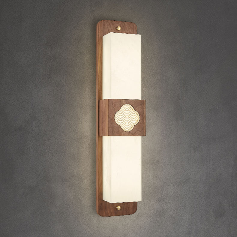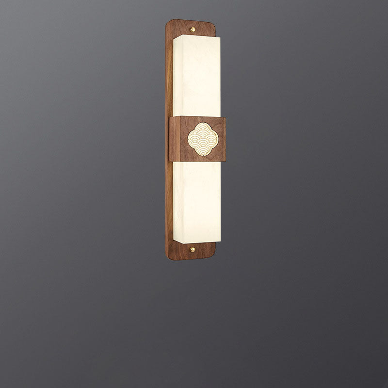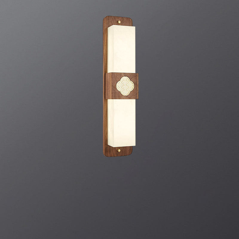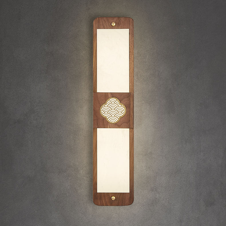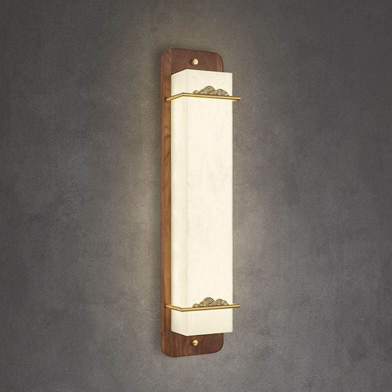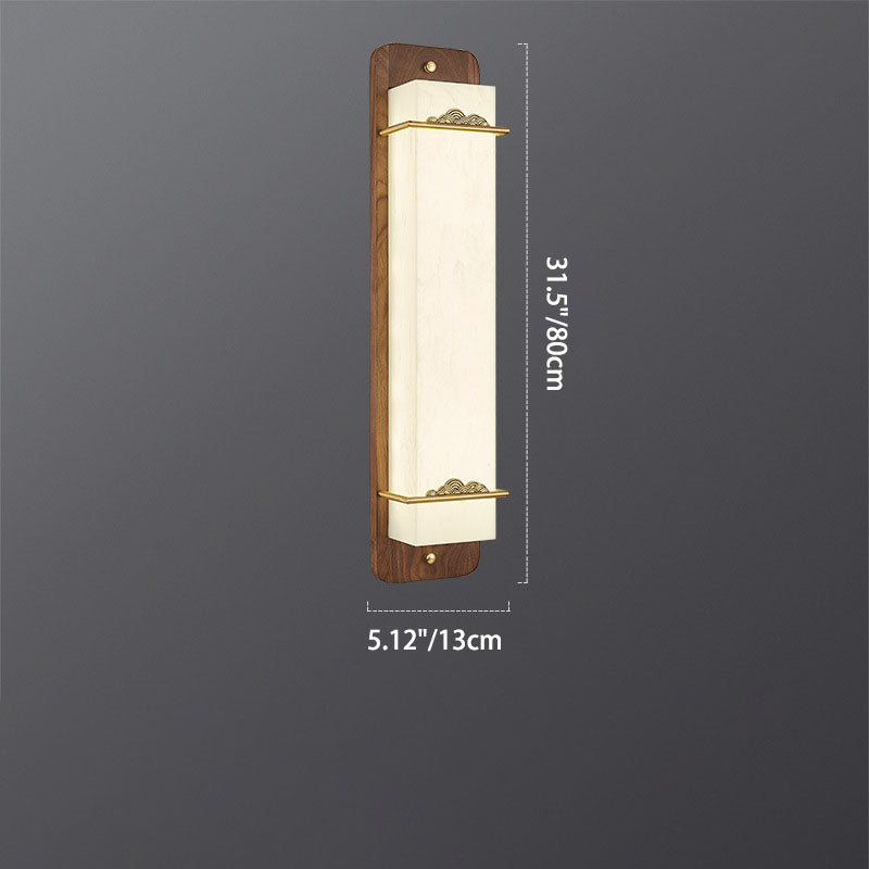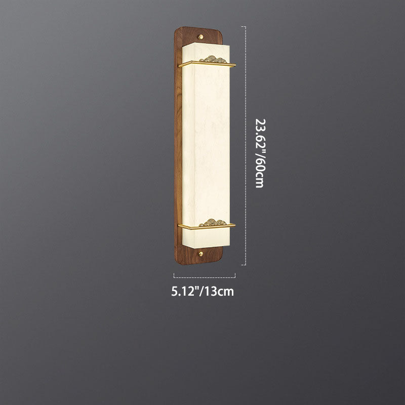 Traditional Chinese Brass Walnut Acrylic Rectangular Cloud LED Wall Sconce Lamp For Bedside