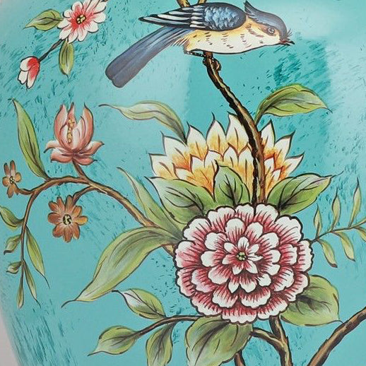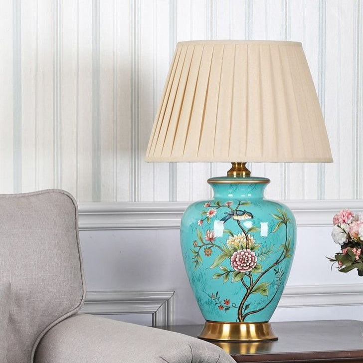 Traditional Chinese Cone Lampshade Ceramic Fabric Iron 1-Light Table Lamp For Living Room