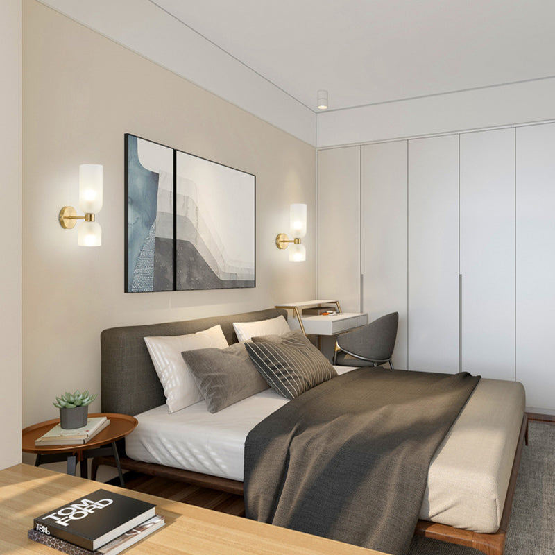 Traditional Chinese Copper Glass Cup Shade Up And Down Illuminated 2-Light Wall Sconce Lamp For Bedroom