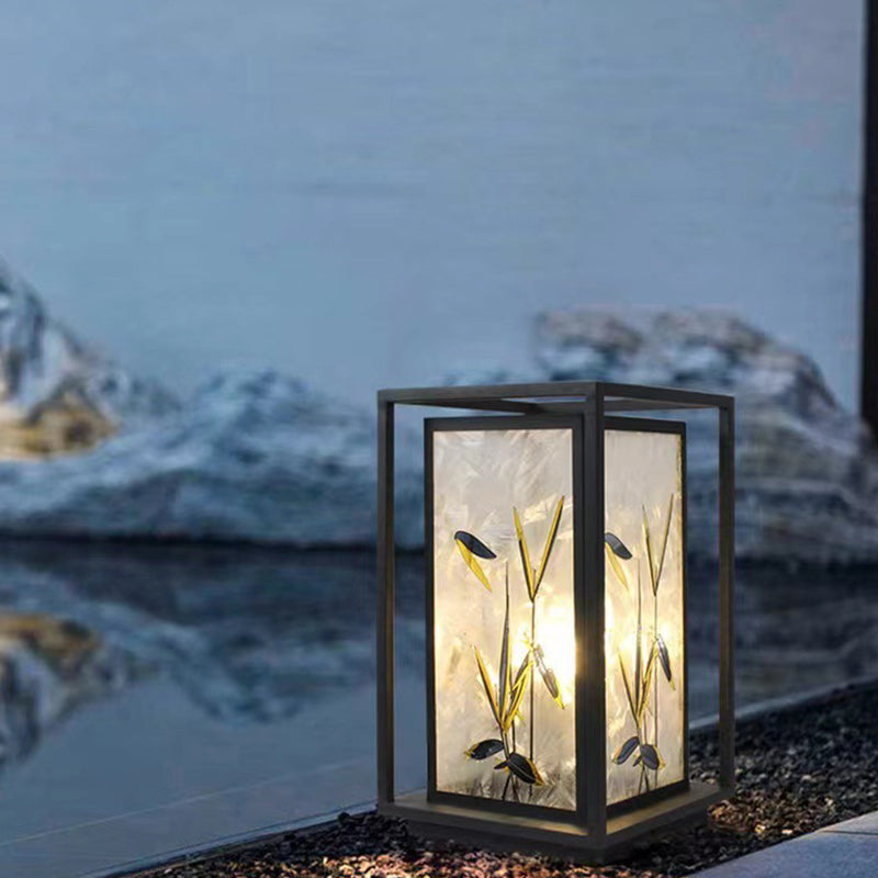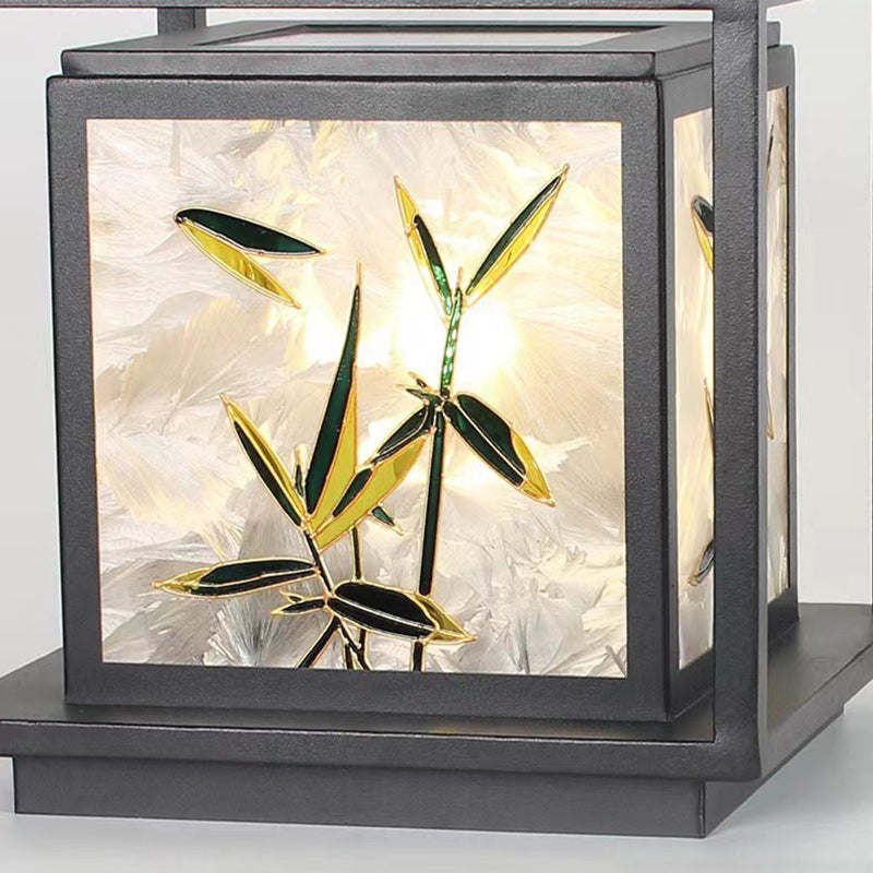 Traditional Chinese Crackle Enamel Bamboo Acrylic Galvanized Steel LED Outdoor Post Light For Garden