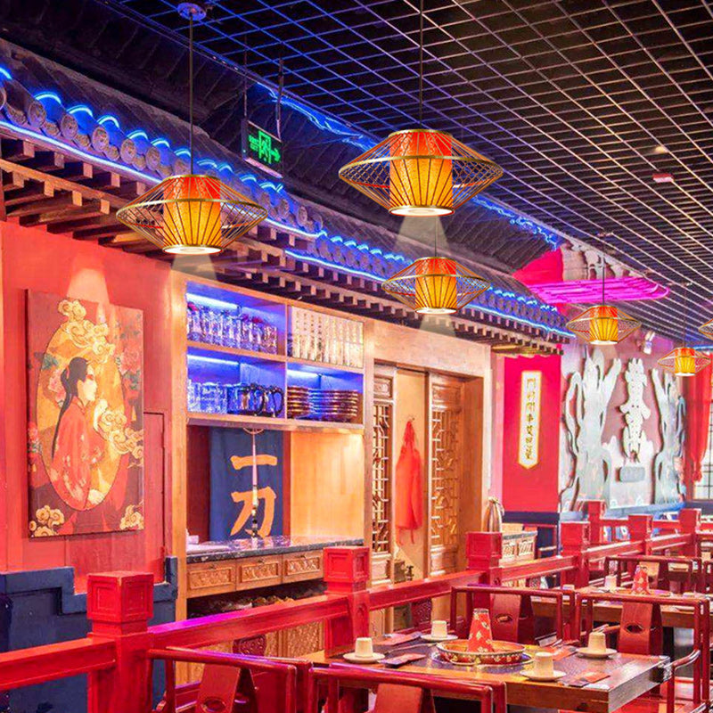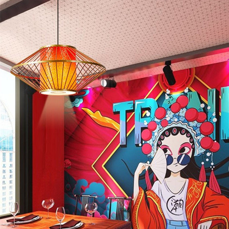 Traditional Chinese Cylinder Pattern Fabric Lampshade Iron 1 - Light Chandeliers For Dining Room