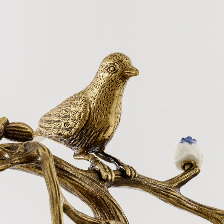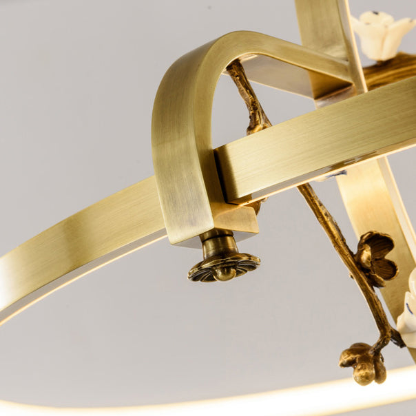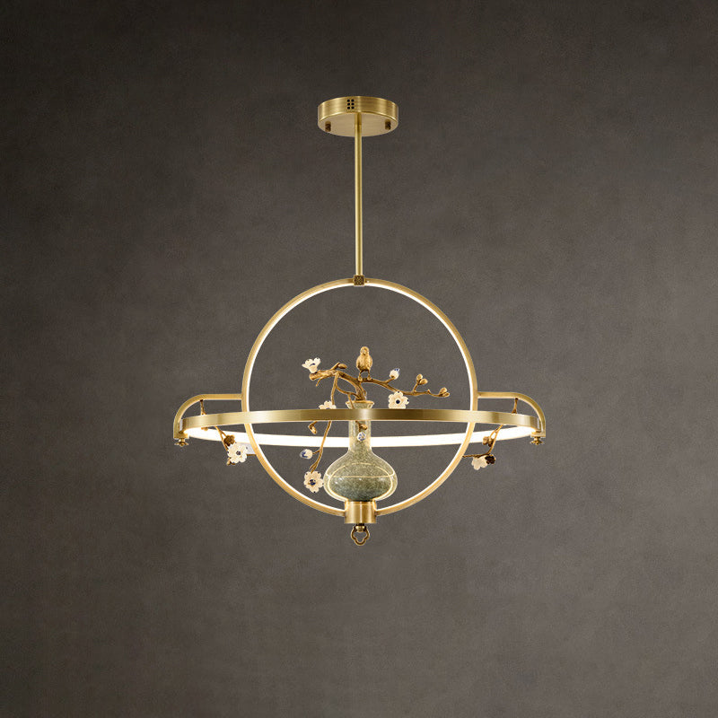 Traditional Chinese Dome Round Magnolia Plum Blossom Ceramic Vase Copper Silicone LED Chandeliers For Dining Room