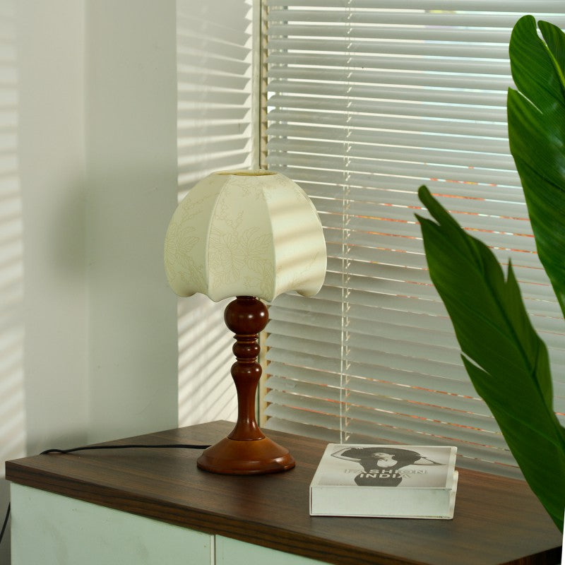 Traditional Chinese Dome Wood Fabric 1-Light Table Lamp For Living Room