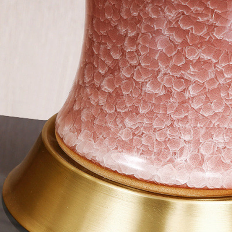 Traditional Chinese Drum Ceramic Iron Fabric 1-Light Table Lamp For Living Room