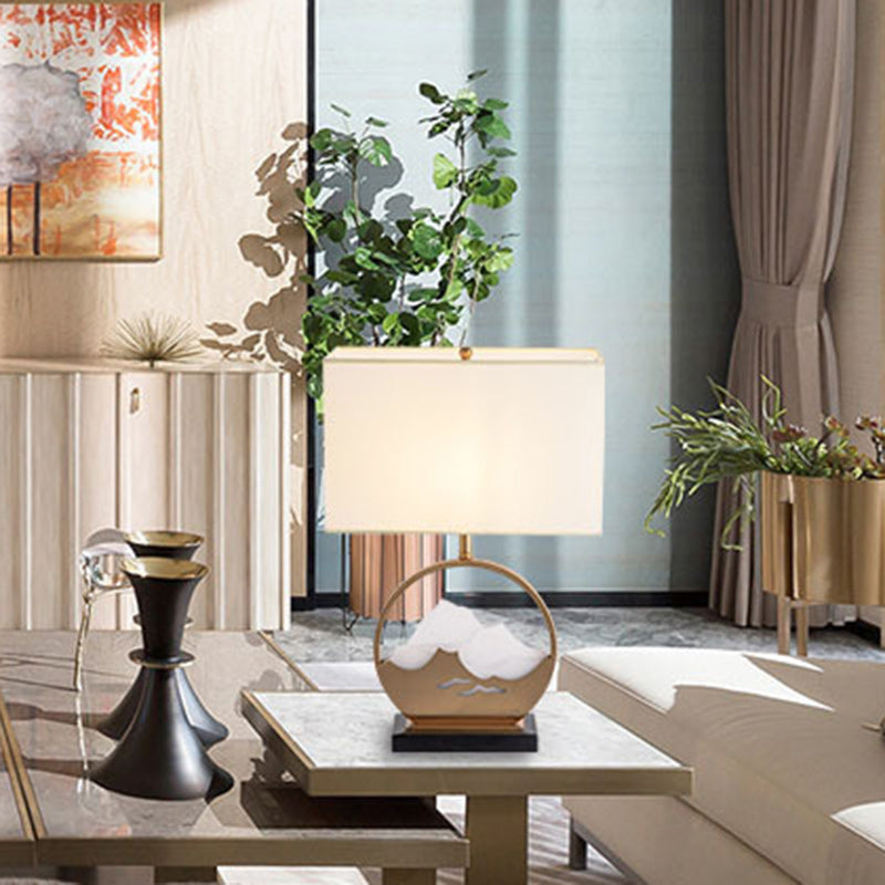Traditional Chinese Fabric Cylinder Shade Iron Acrylic 1-Light Table Lamp For Bedroom