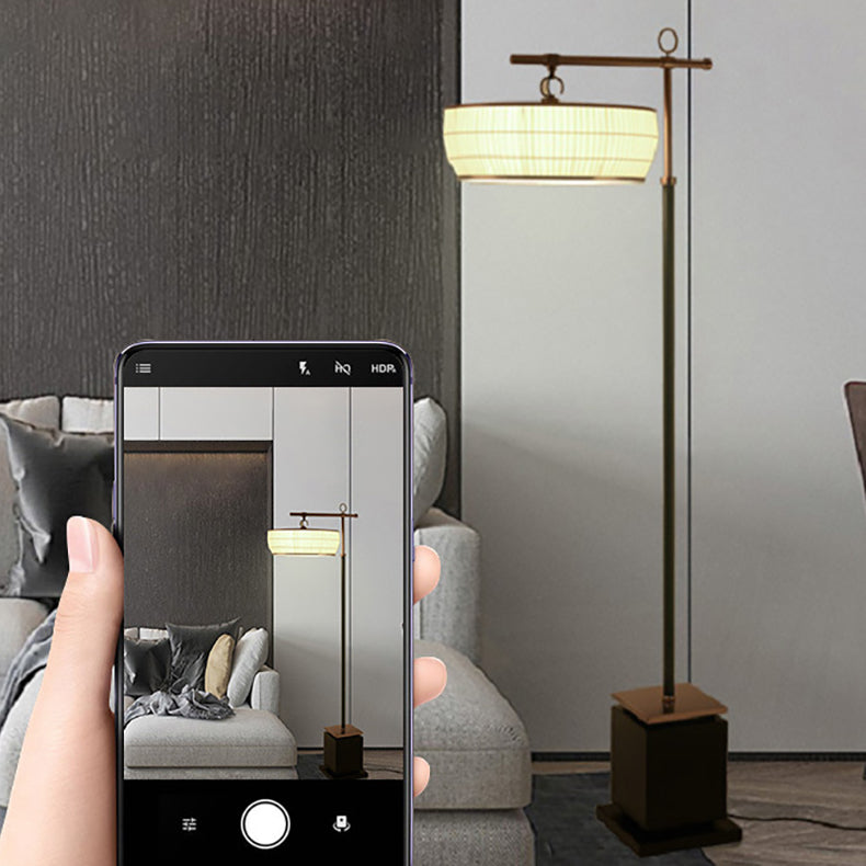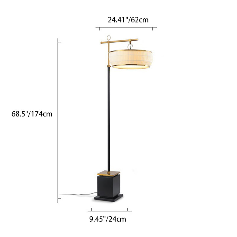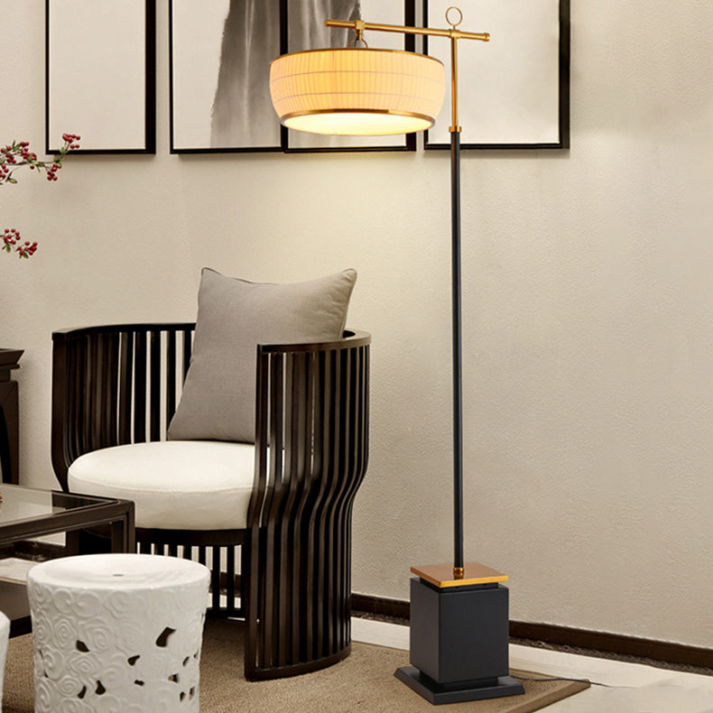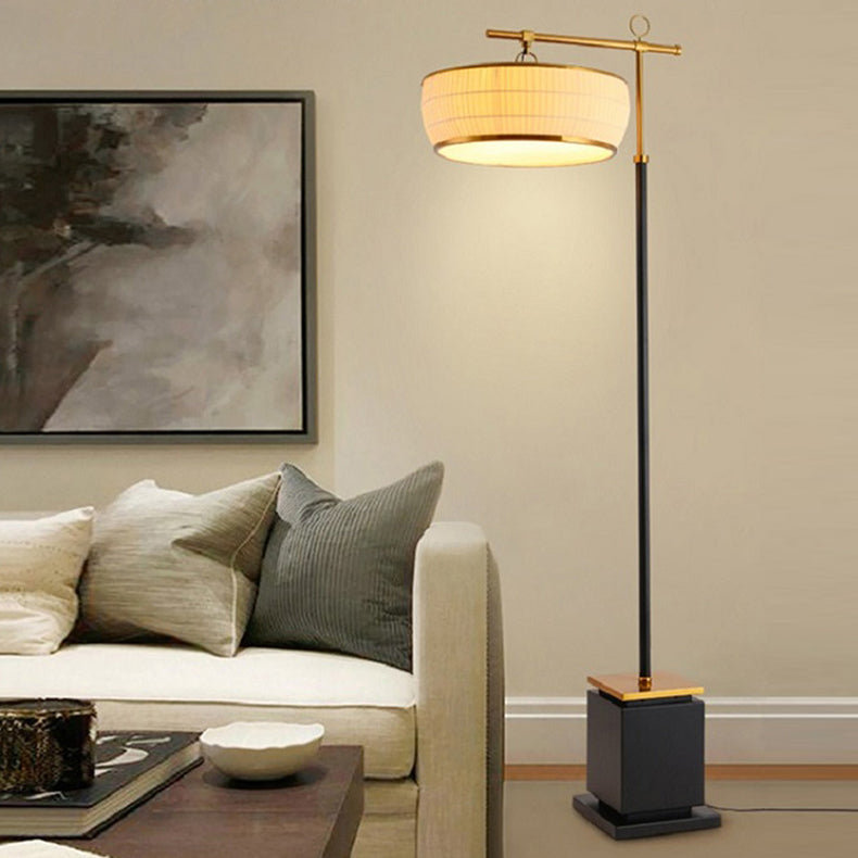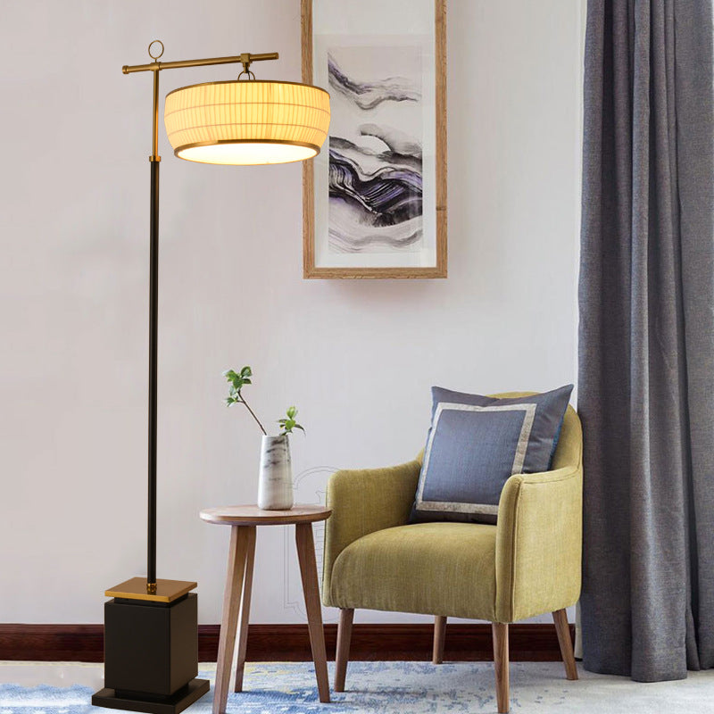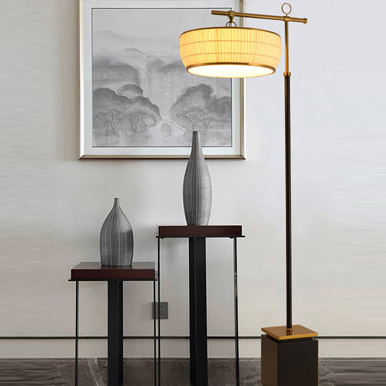 Traditional Chinese Fabric Pleated Lantern Shade Hardware Base 1-Light Standing Floor Lamp For Living Room
