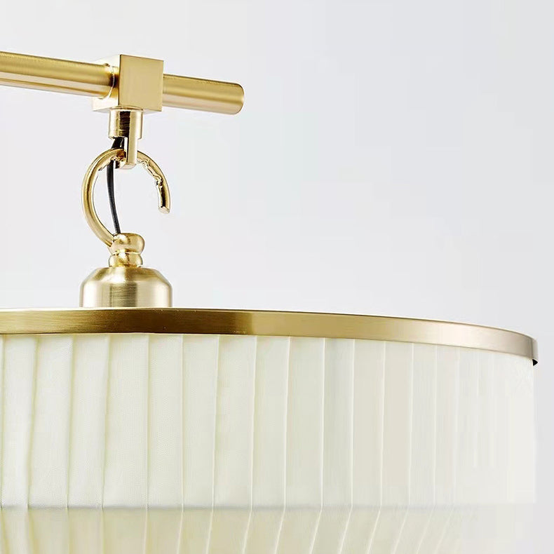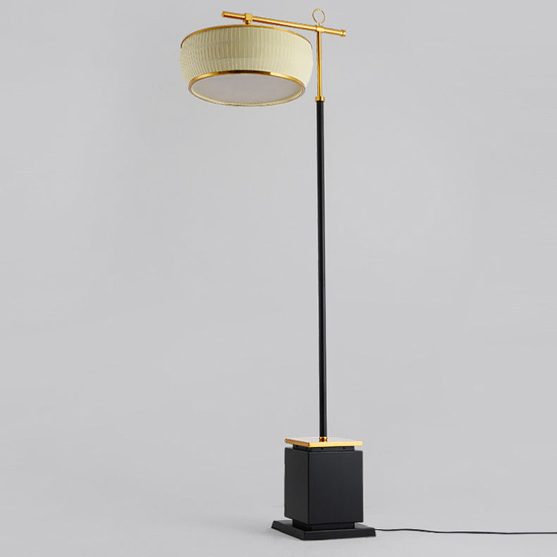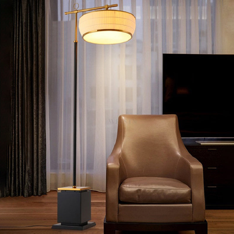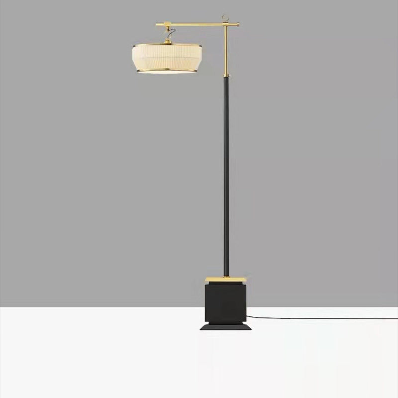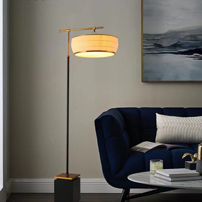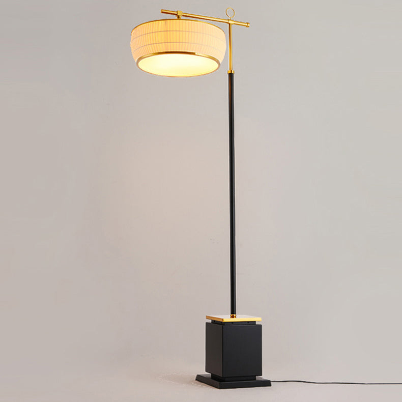 Traditional Chinese Fabric Pleated Lantern Shade Hardware Base 1-Light Standing Floor Lamp For Living Room