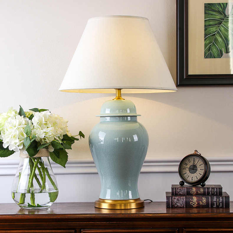 Traditional Chinese Fabric Shade Ceramic Vase Base 1-Light Table Lamp For Study