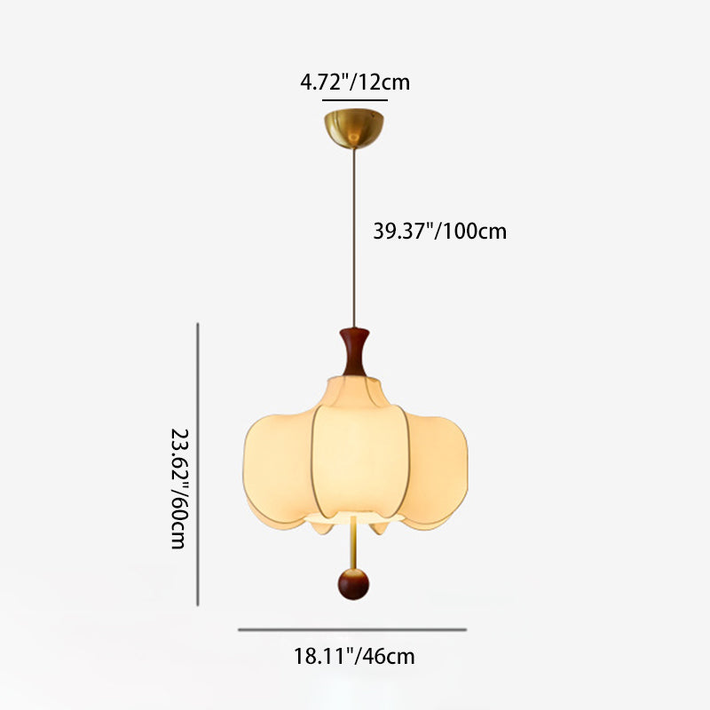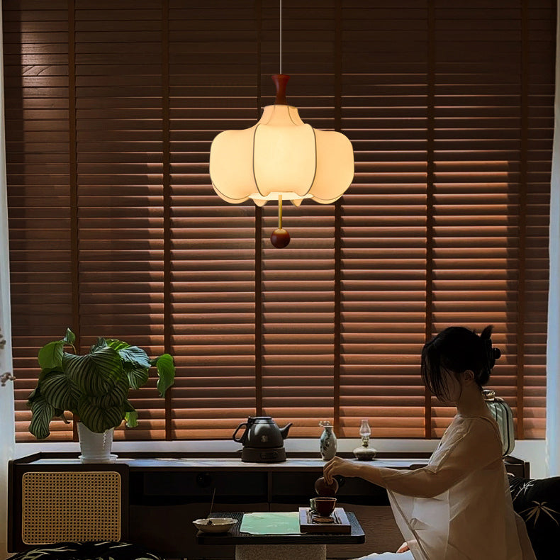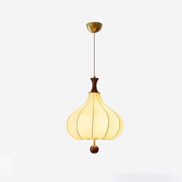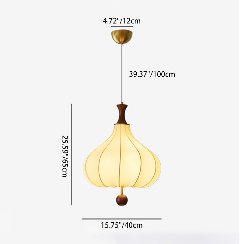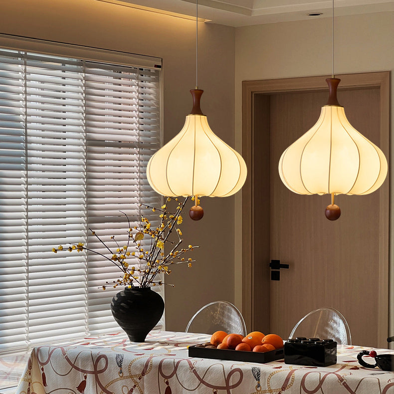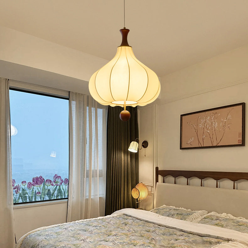 Traditional Chinese Flower Onion Fabric Wood 3-Light Pendant Light For Bedroom