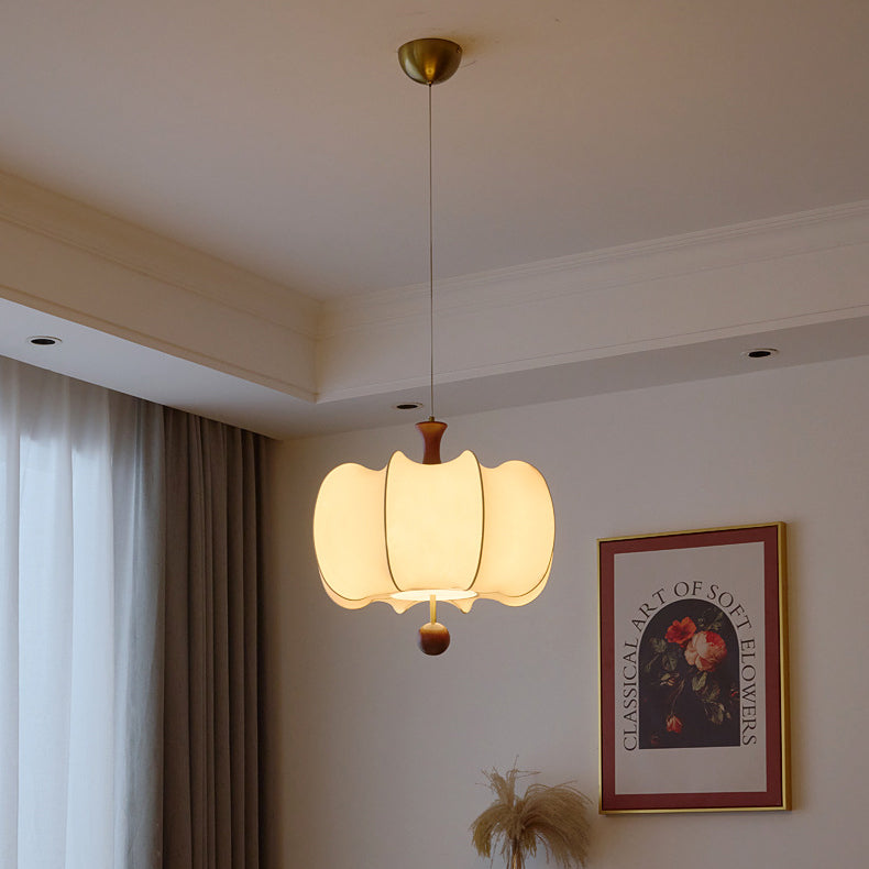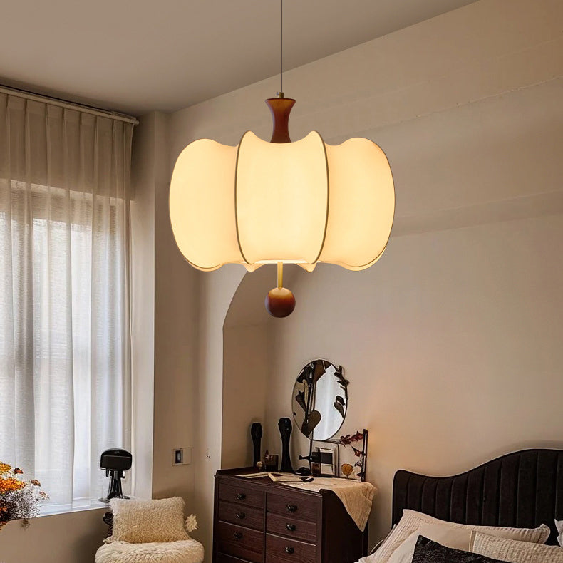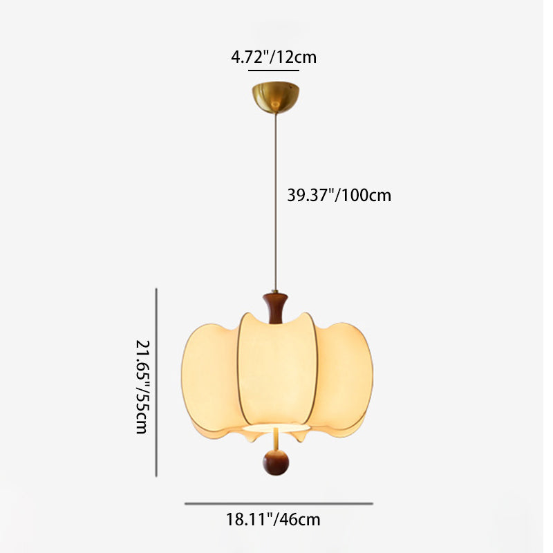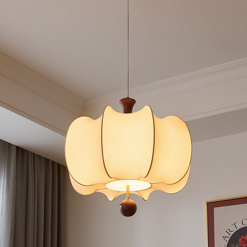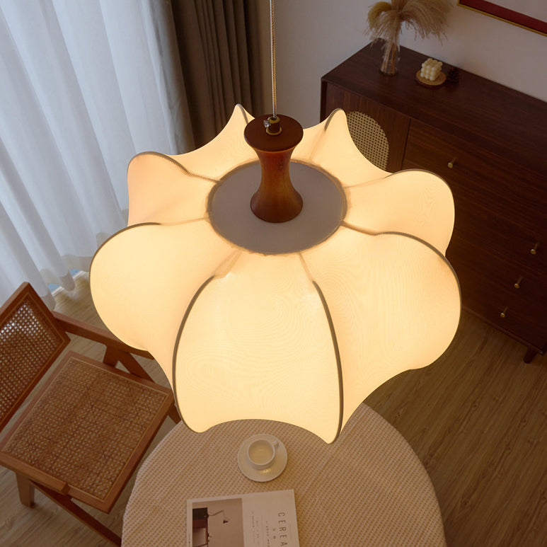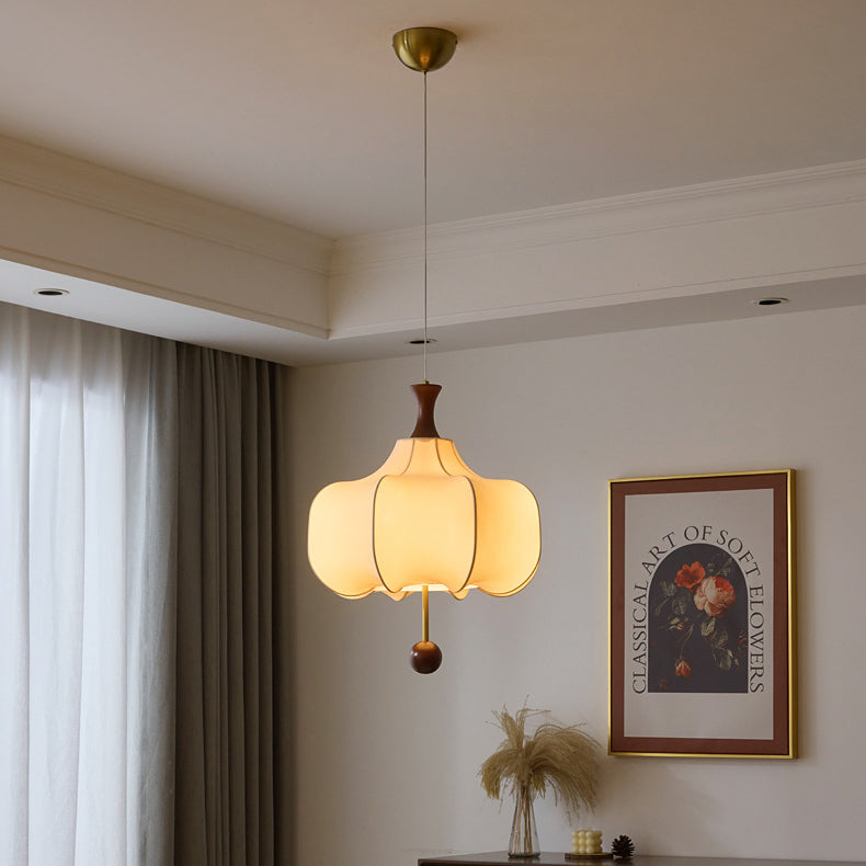 Traditional Chinese Flower Onion Fabric Wood 3-Light Pendant Light For Bedroom