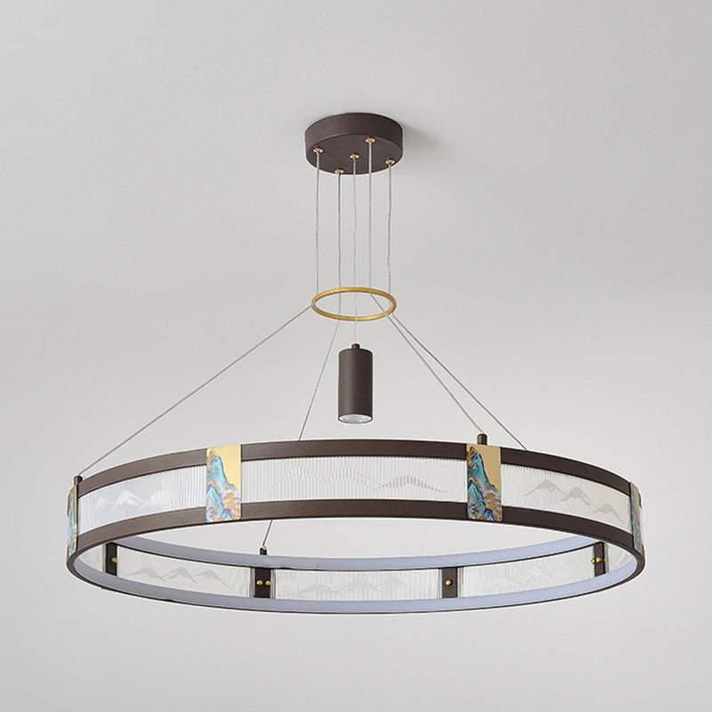 Traditional Chinese Iron Acrylic Stainless Steel Round Enamel Painting LED Chandeliers Spotlight For Living Room