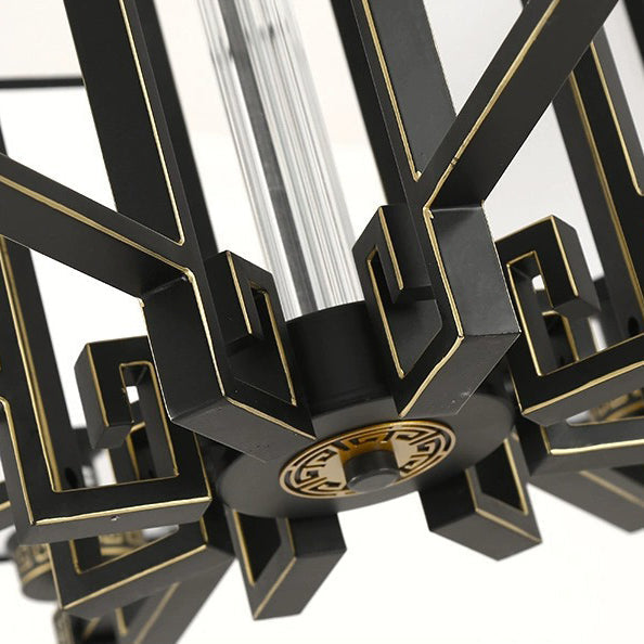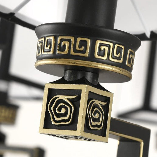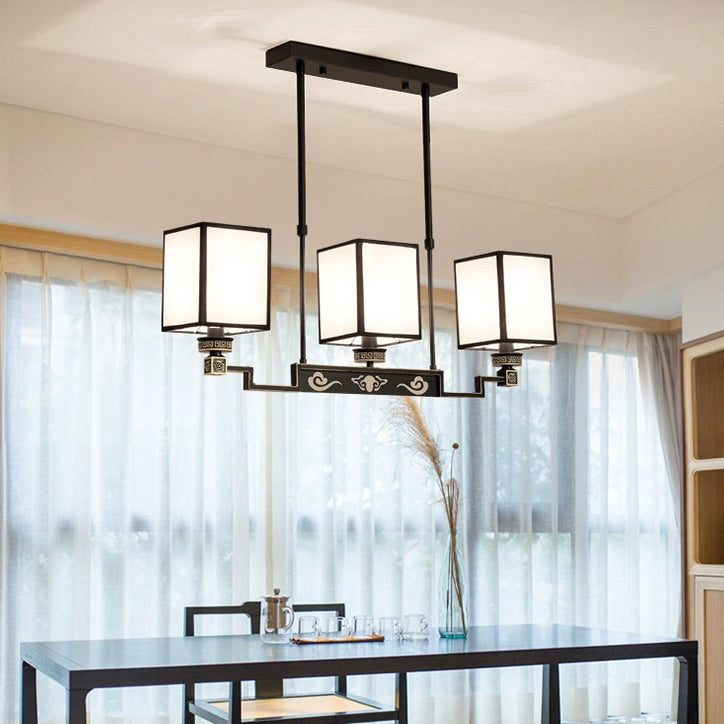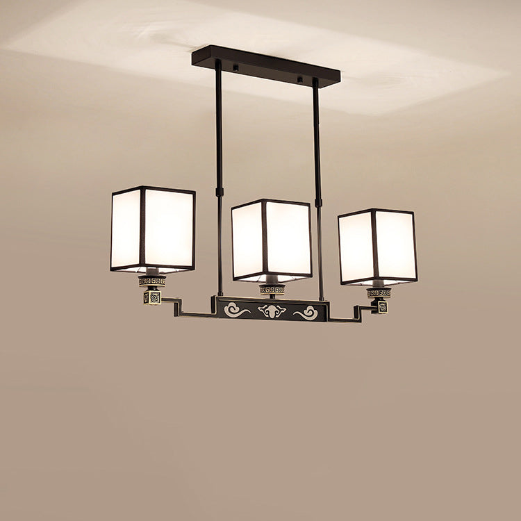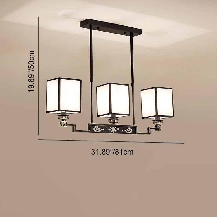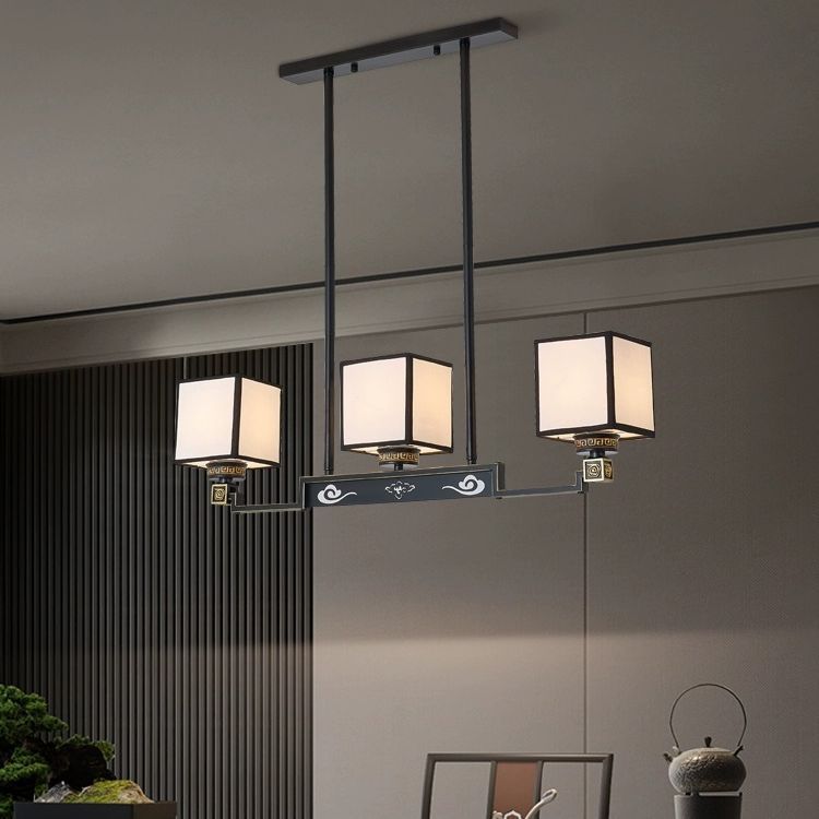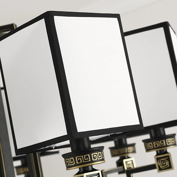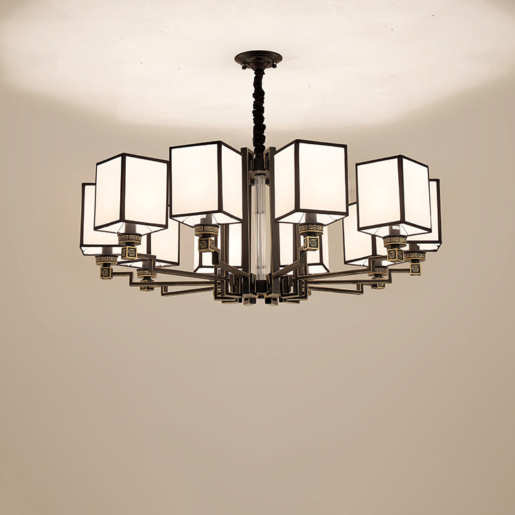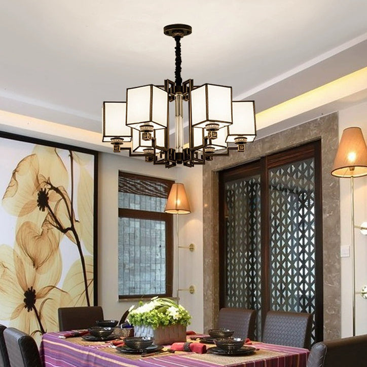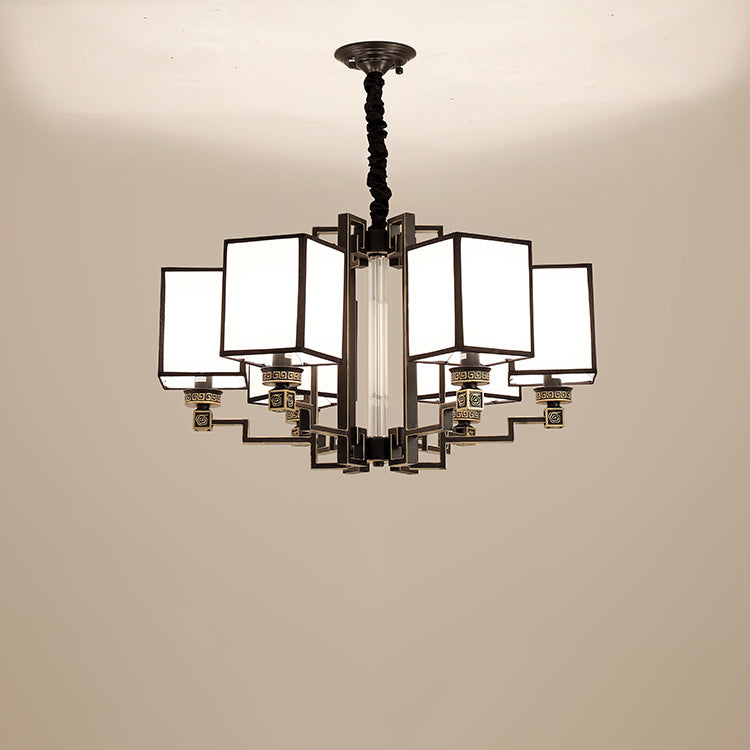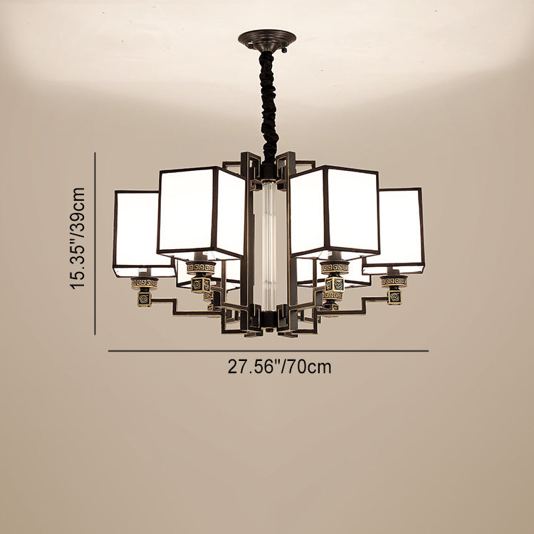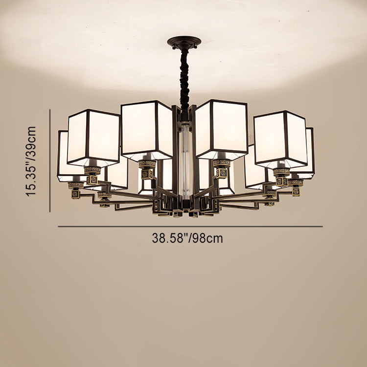 Traditional Chinese Iron Fabric Cubic Rectangular 3/6/8/10/12 Light Chandeliers For Living Room
