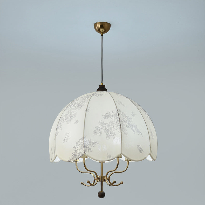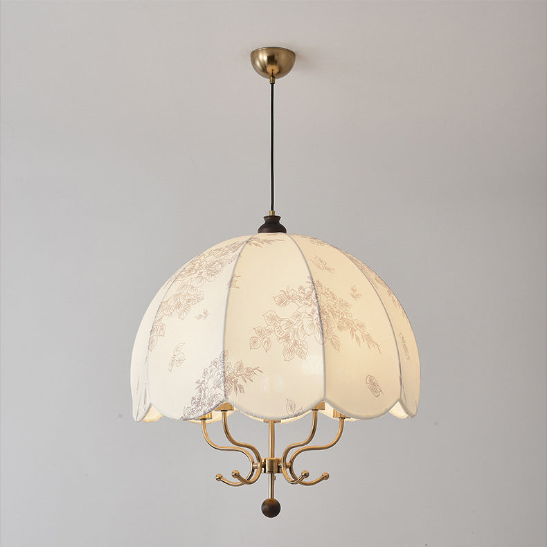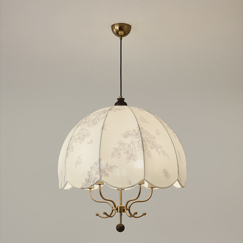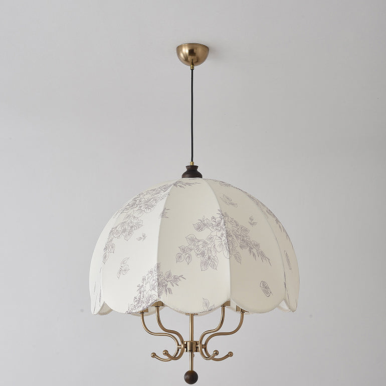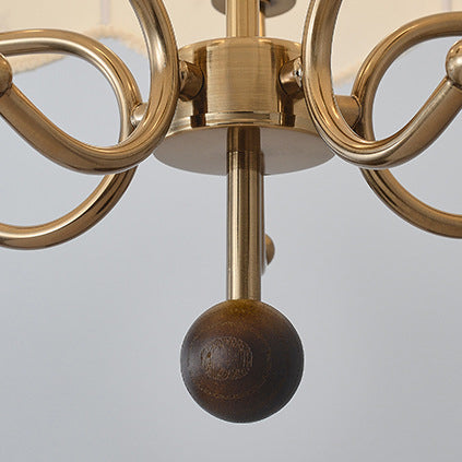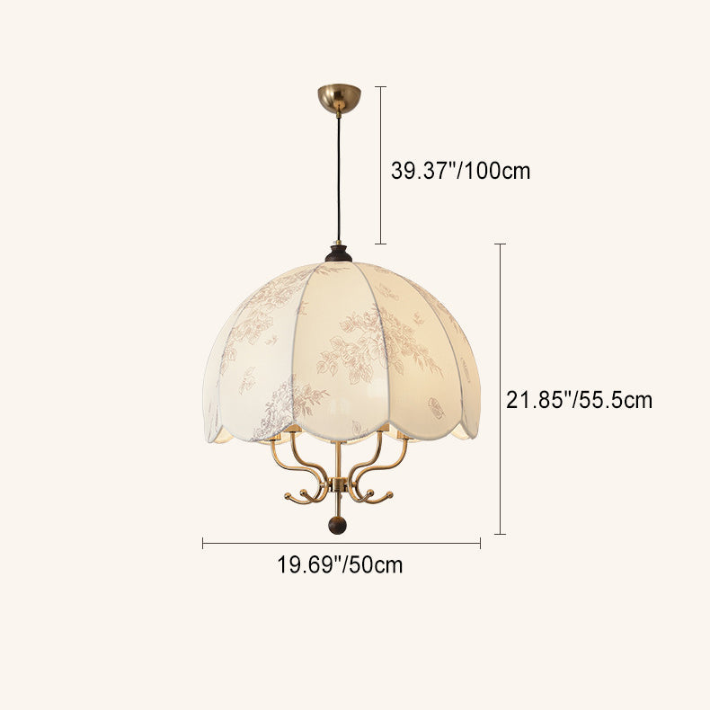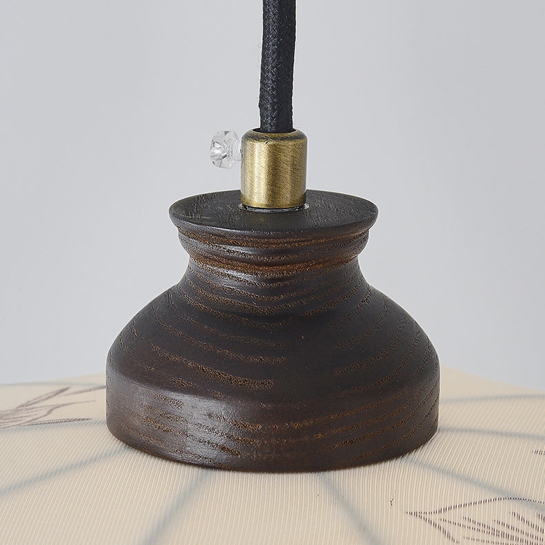 Traditional Chinese Leaves Pattern Solid Wood Fabric Iron 4/5 - Light Chandelier For Dining Room