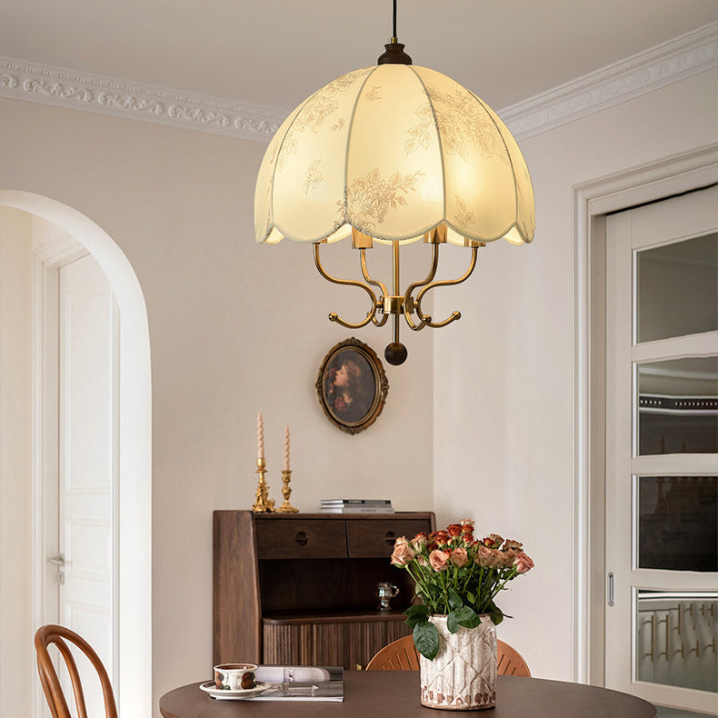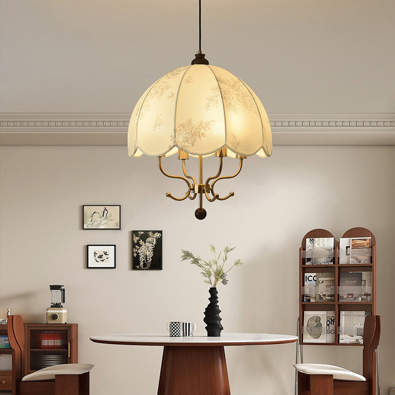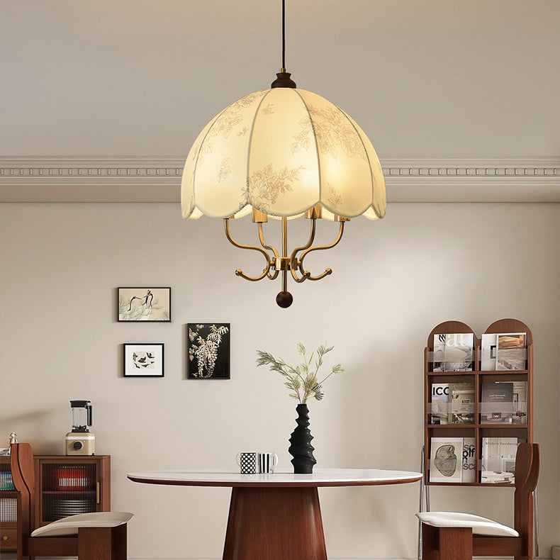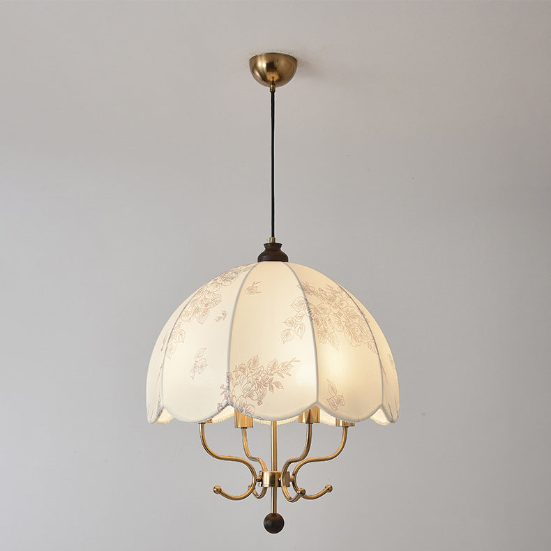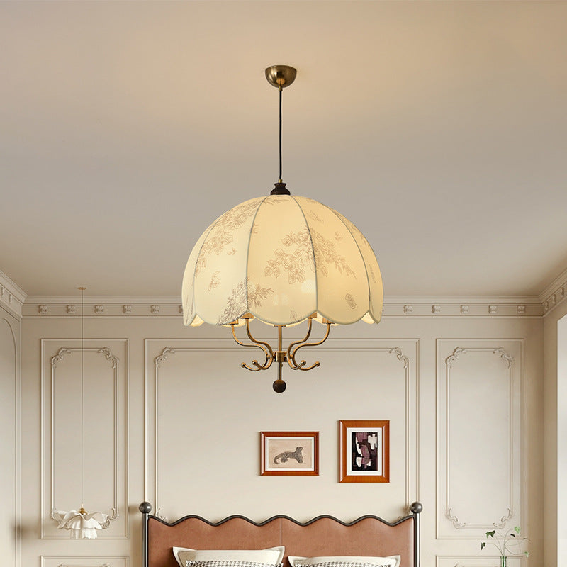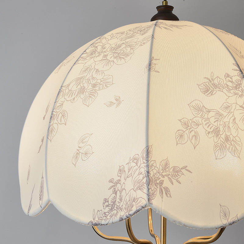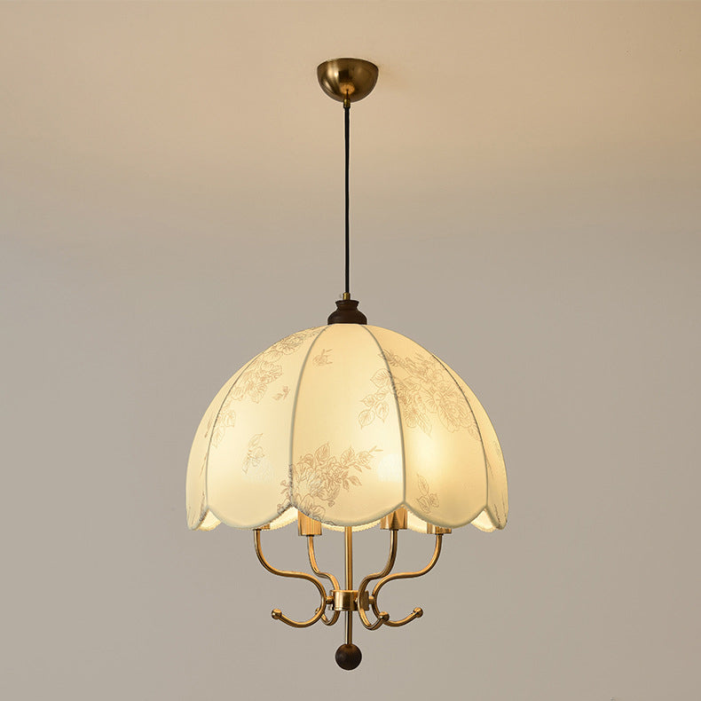 Traditional Chinese Leaves Pattern Solid Wood Fabric Iron 4/5 - Light Chandelier For Dining Room