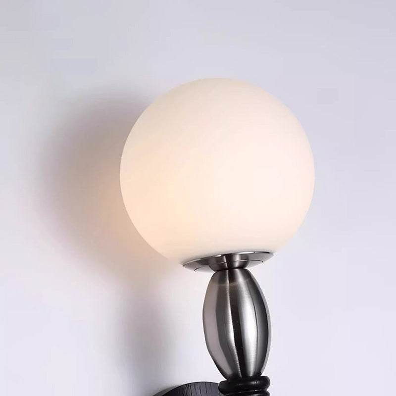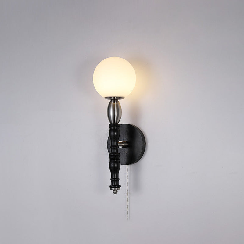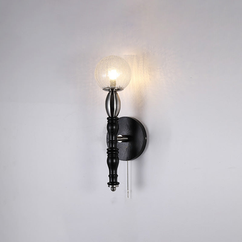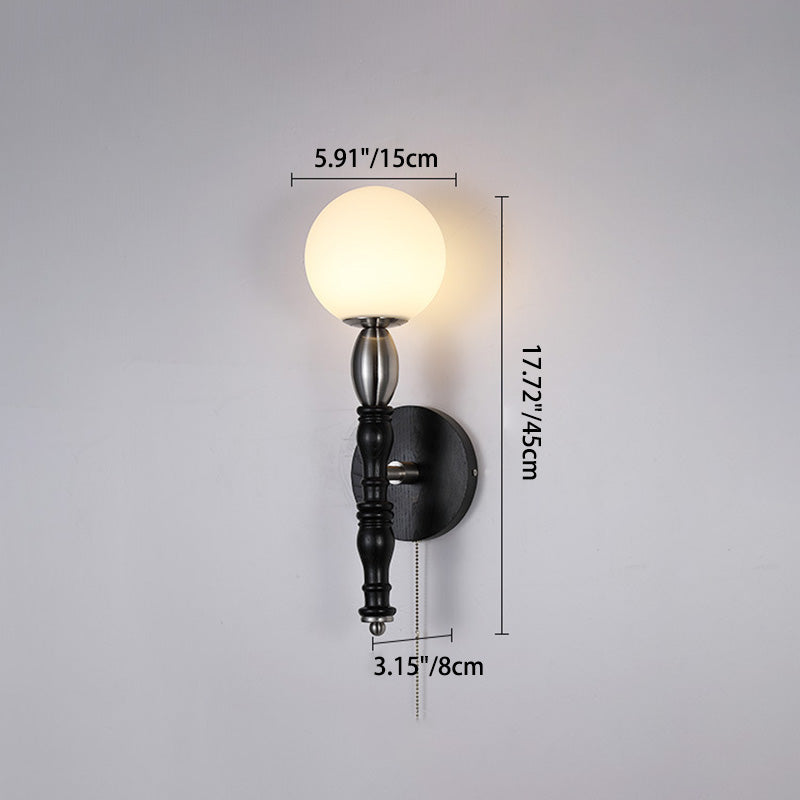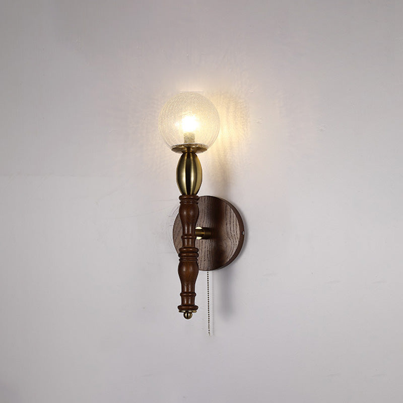 Traditional Chinese Magic Bean Round Glass Ash Wood Hardware 1-Light Wall Sconce Lamp For Living Room