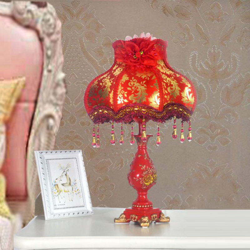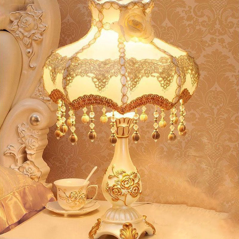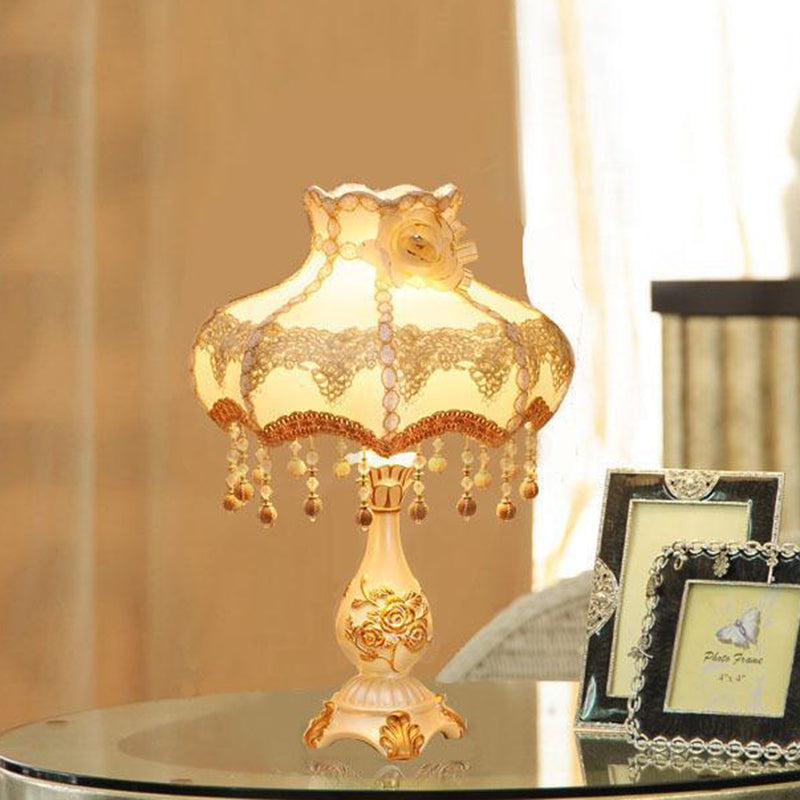 Traditional Chinese Rose Round Pendant Fabric Resin 1-Light Table Lamp For Living Room
