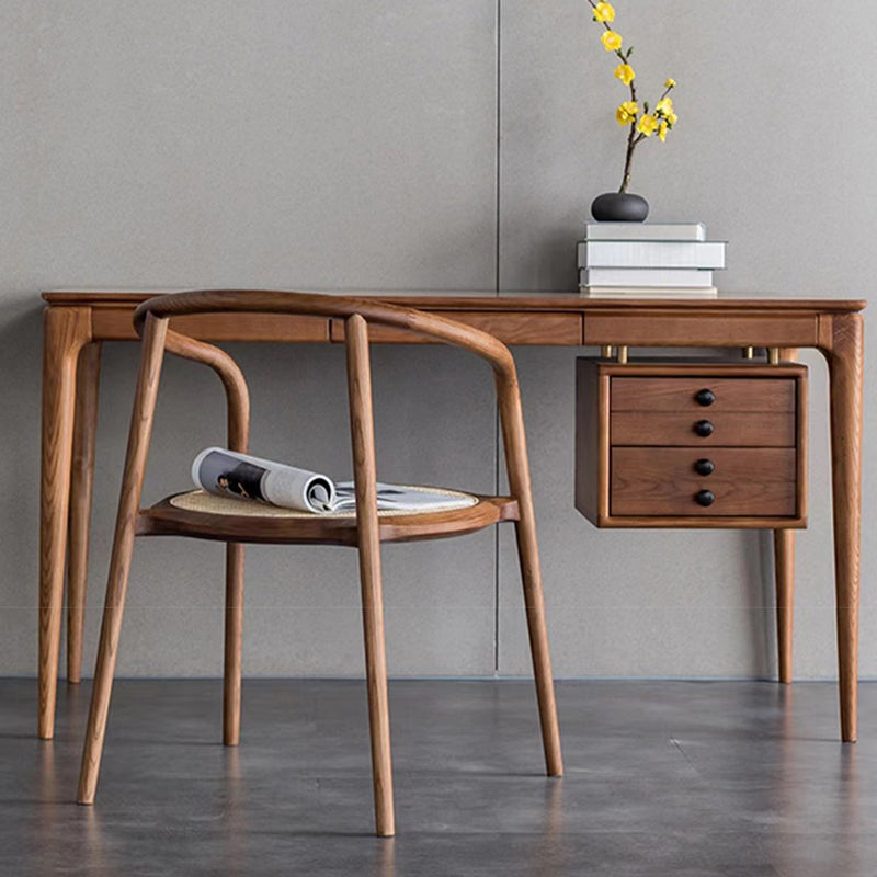 Traditional Chinese Round Ash Wood Rattan Dining Chair Backrest For Dining Room