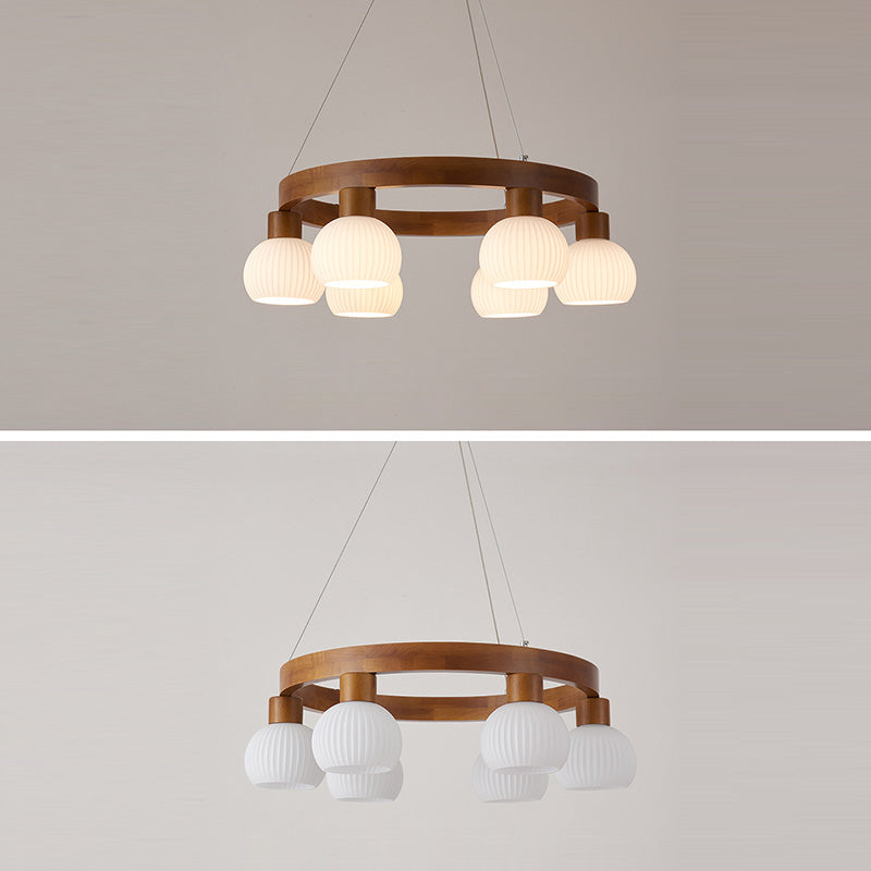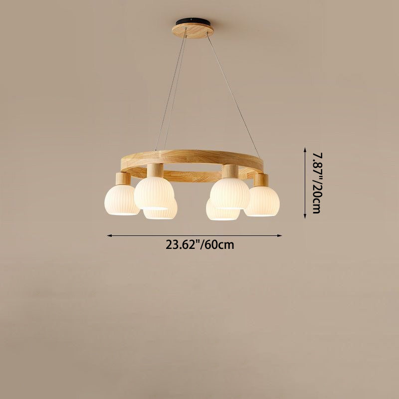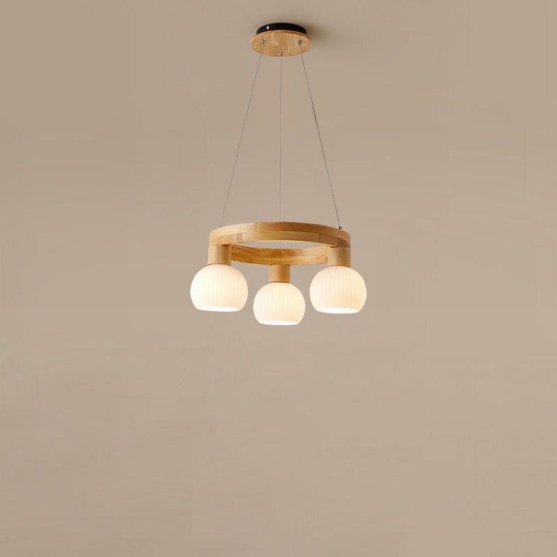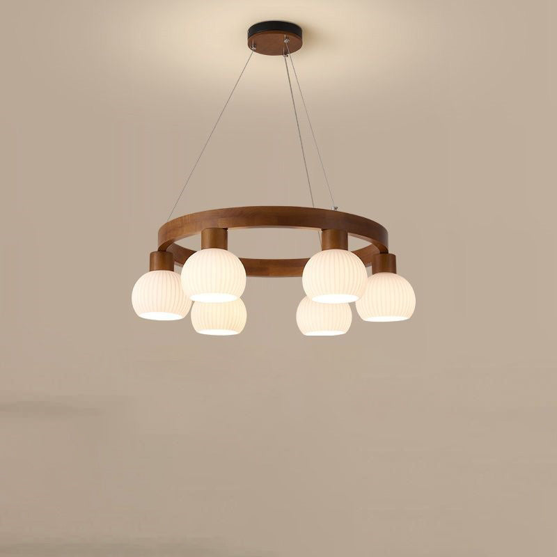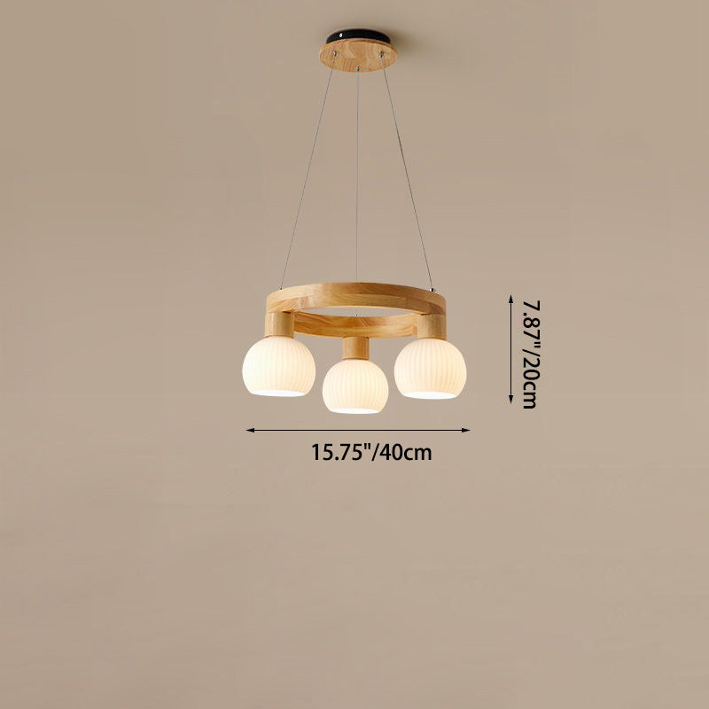 Traditional Chinese Round Branch Magic Bean Glass Solid Wood 3/6 Light Chandelier For Living Room