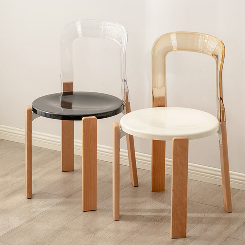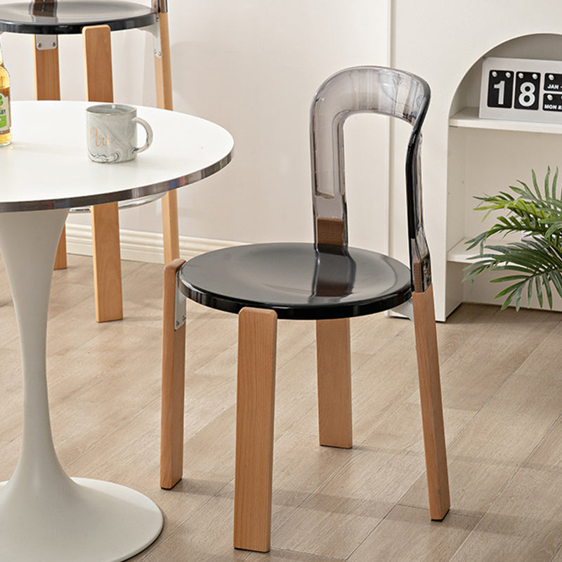 Traditional Chinese Round Curved ABS PC Wood Dining Chair Backrest Armless For Dining Room