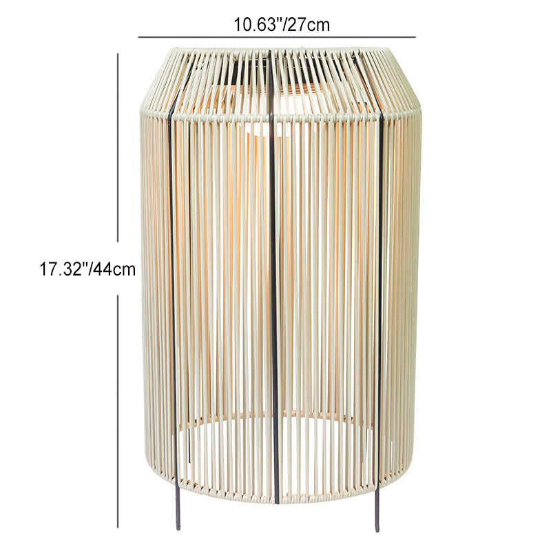 Traditional Chinese Solar Waterproof Cylindrical PE Rattan LED Standing Floor Lamp For Outdoor Patio