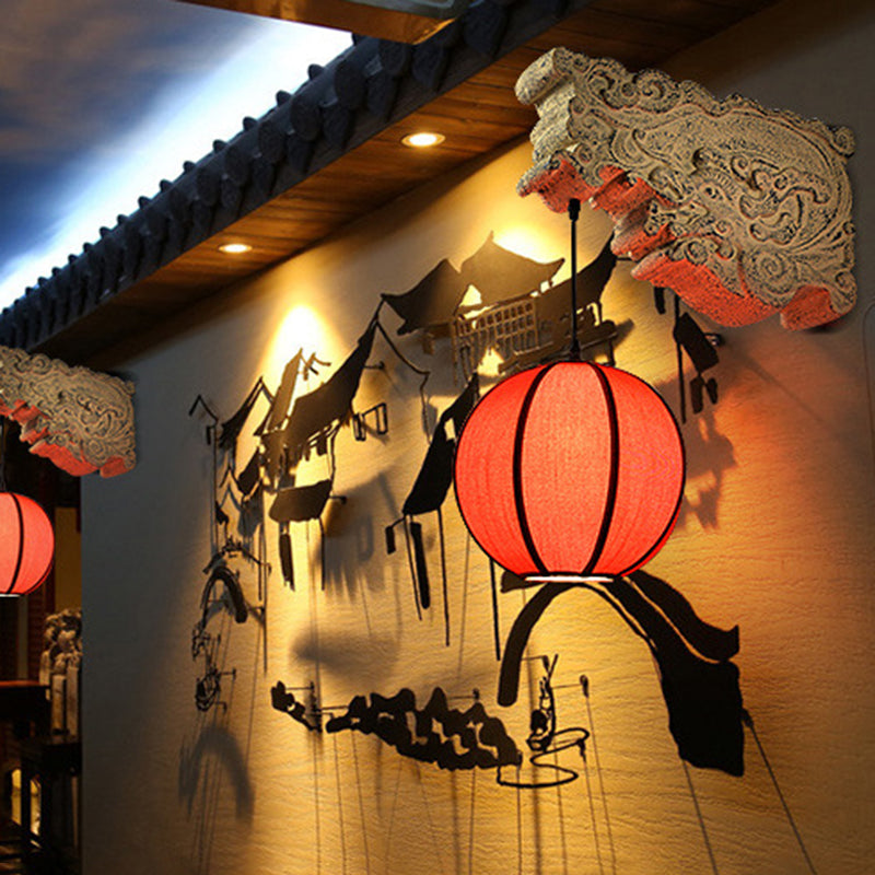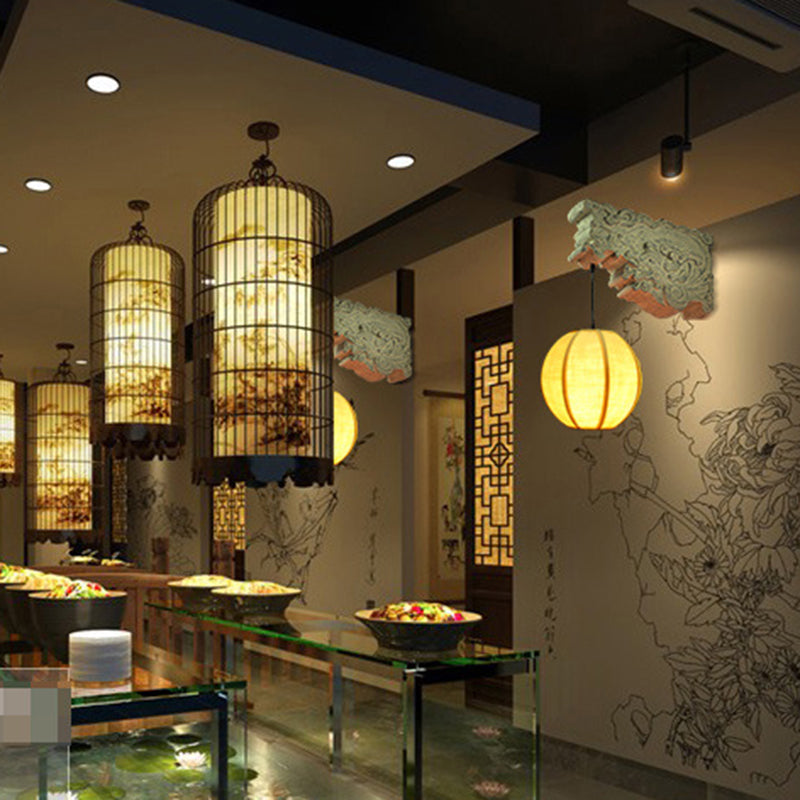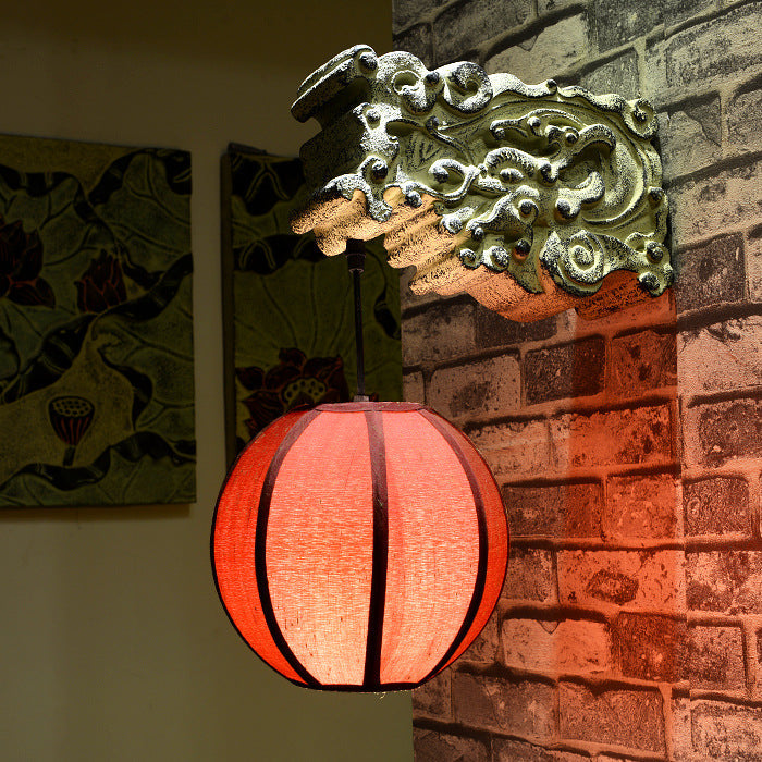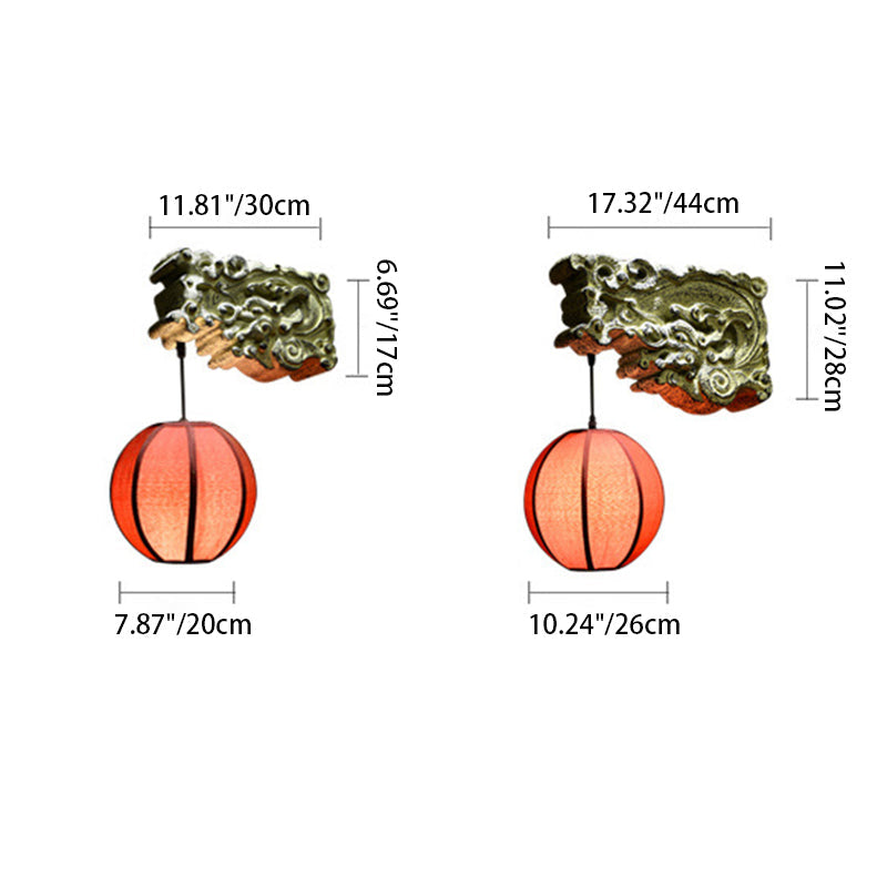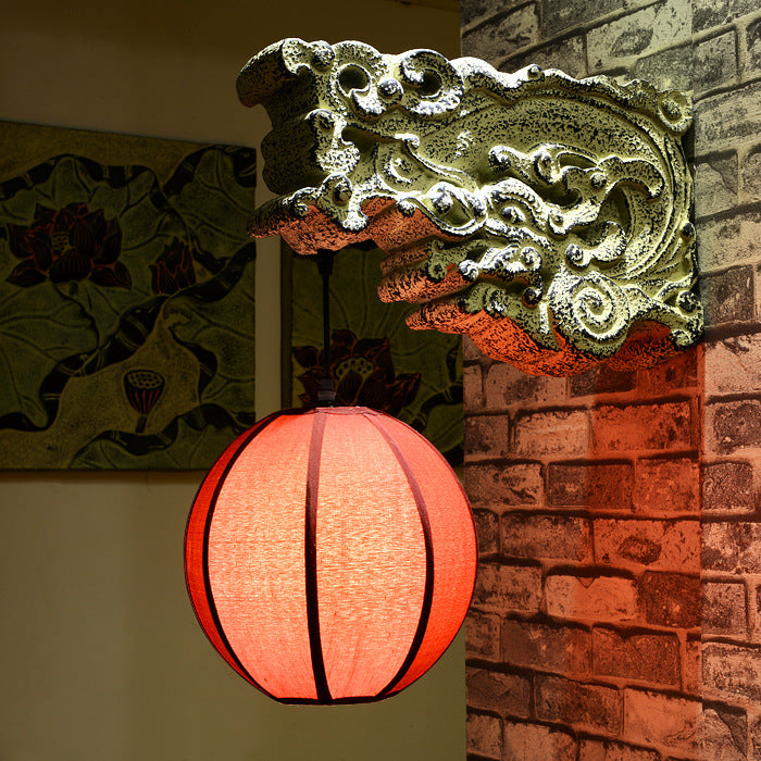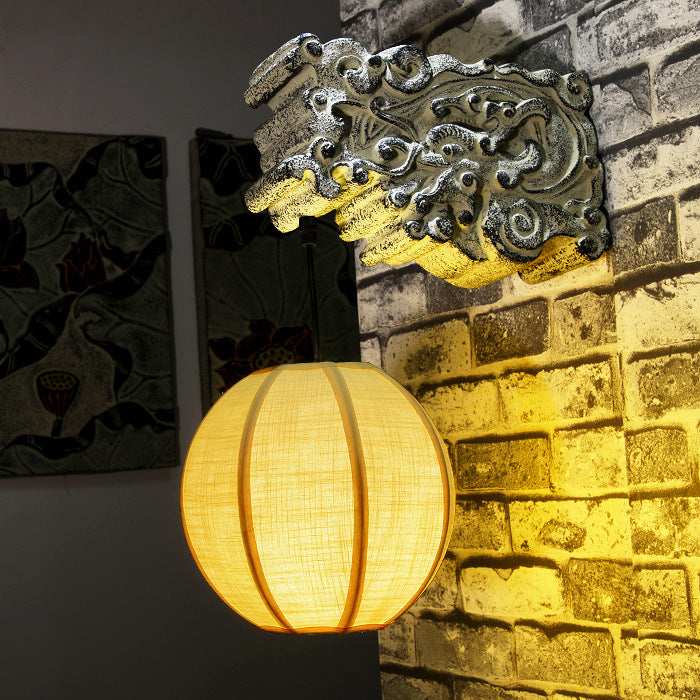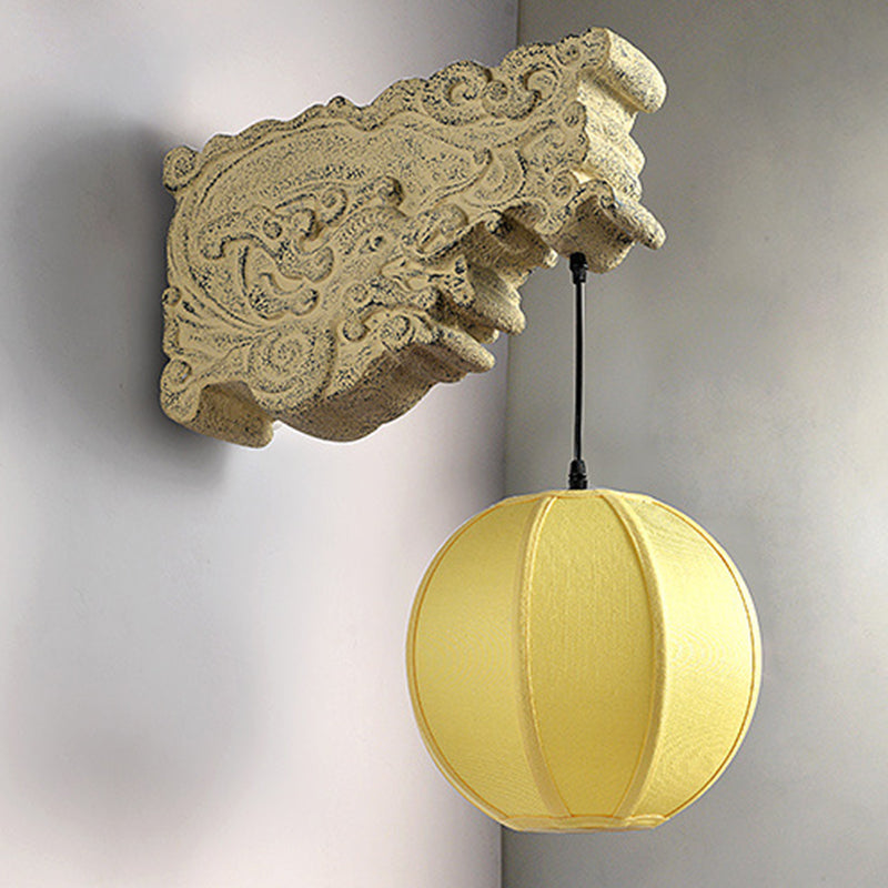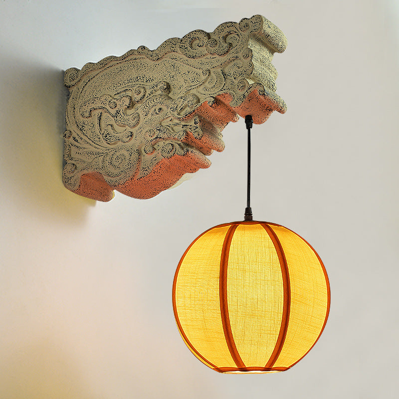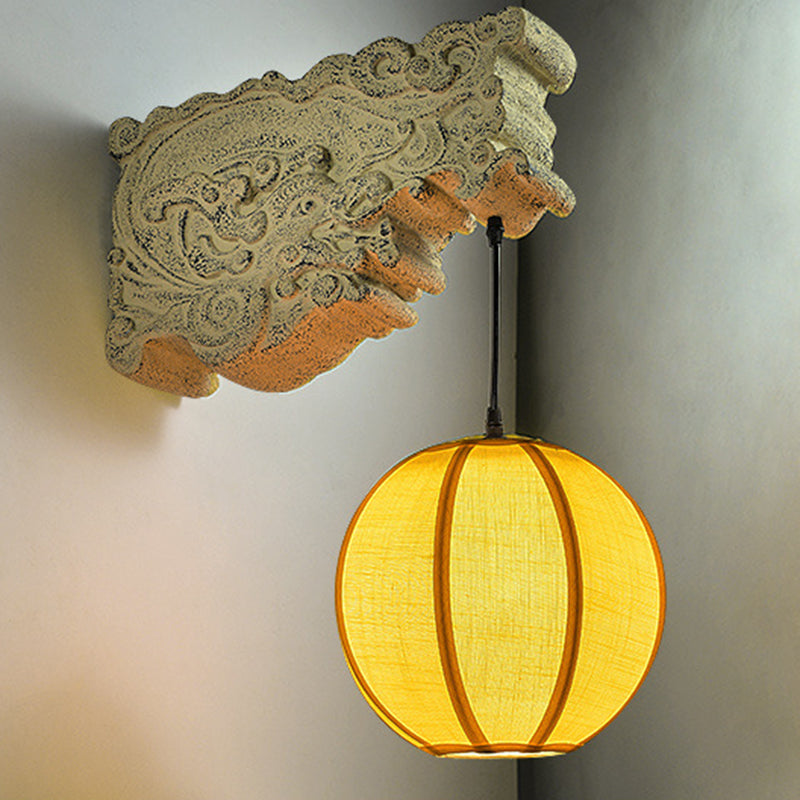 Traditional Chinese Sphere Resin Limestone Cloth 1-Light Wall Sconce Lamp For Outdoor Patio