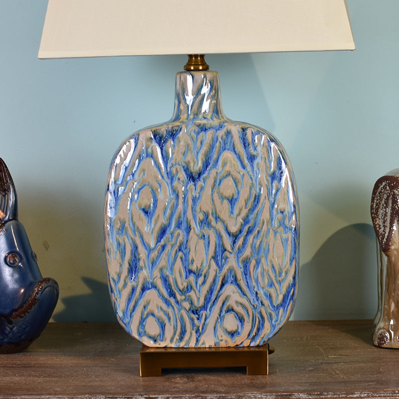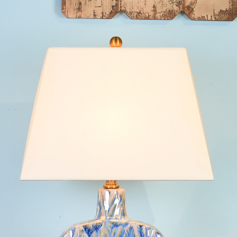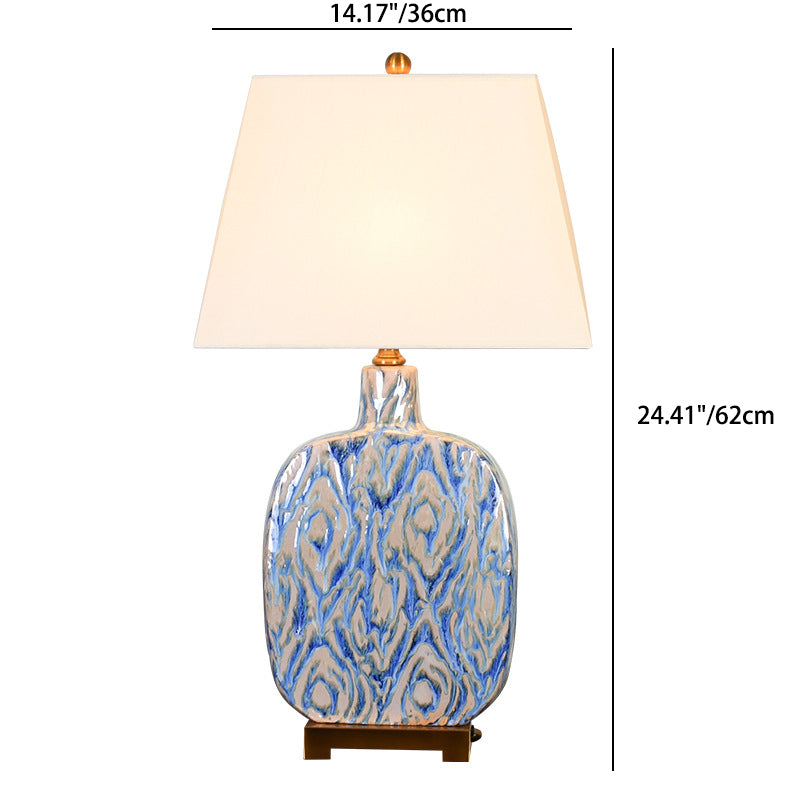 Traditional Chinese Square Copper Ceramic Fabric 1-Light Table Lamp For Bedroom