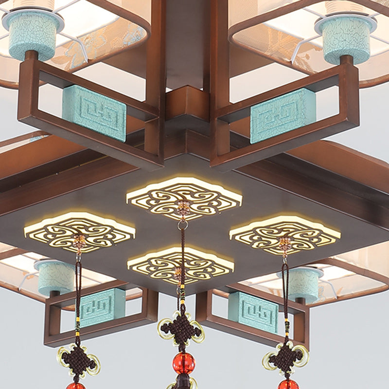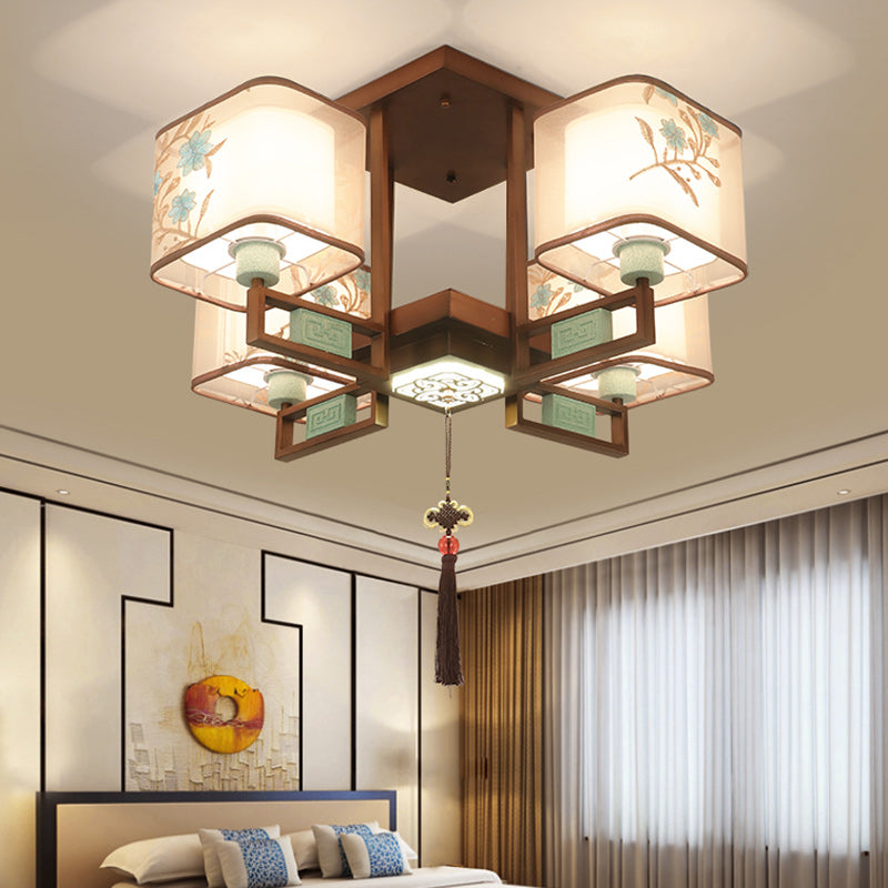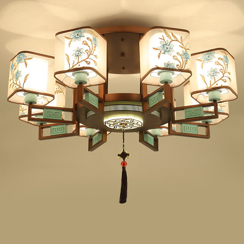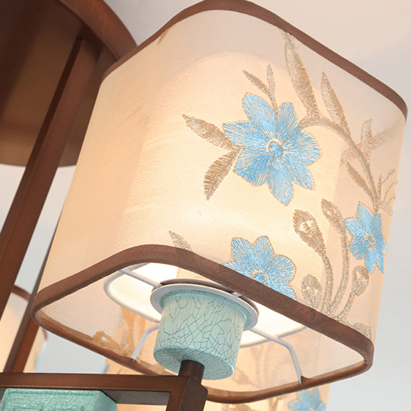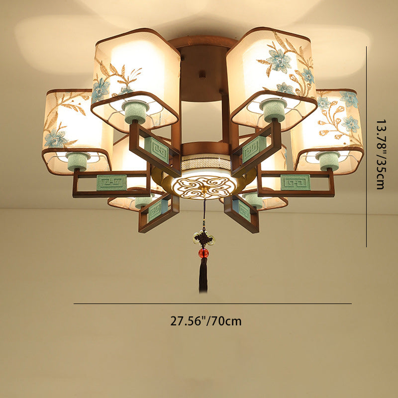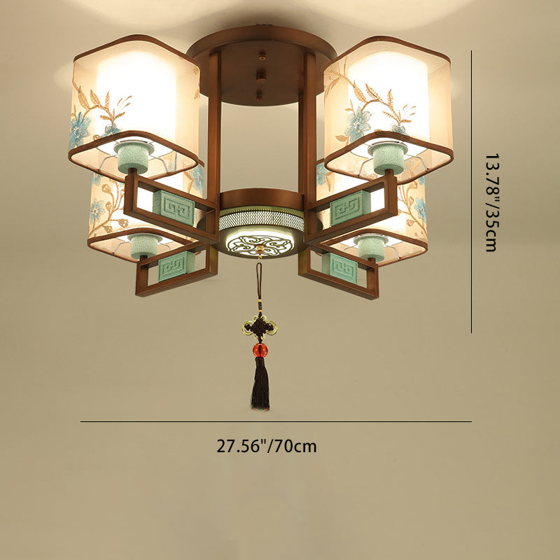 Traditional Chinese Square Fabric Pattern Embroidery Lampshade Iron 4/6/8 - Light Chandeliers For Living Room