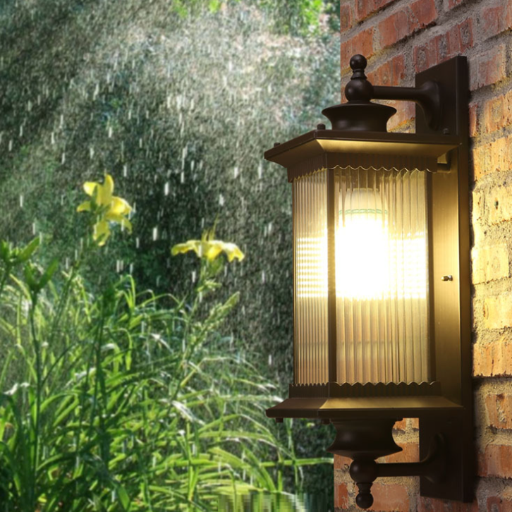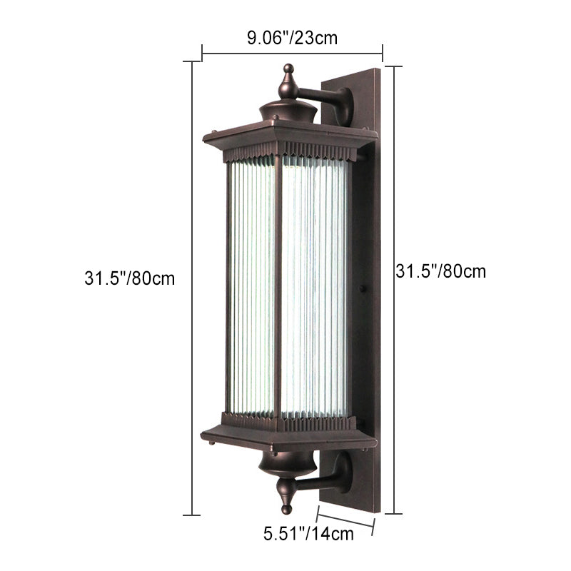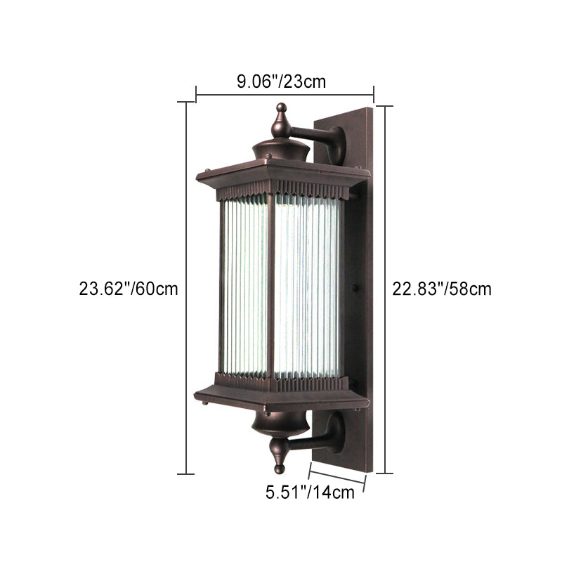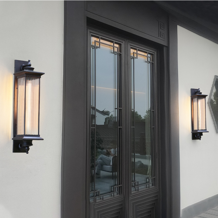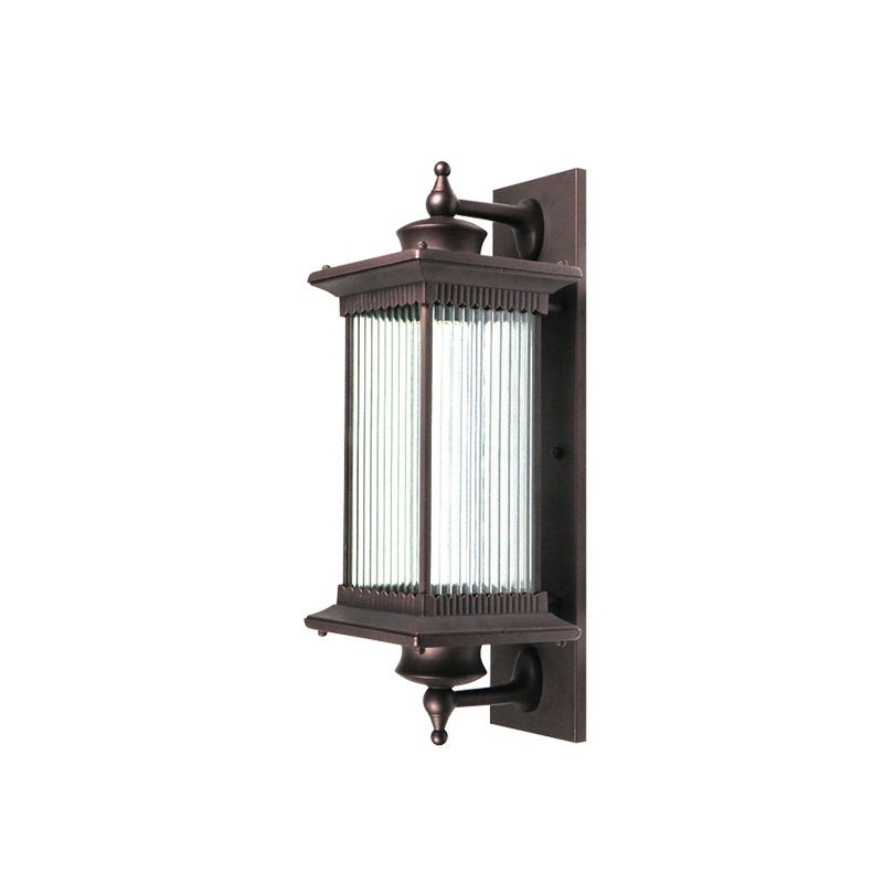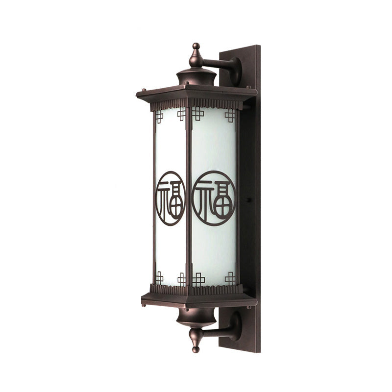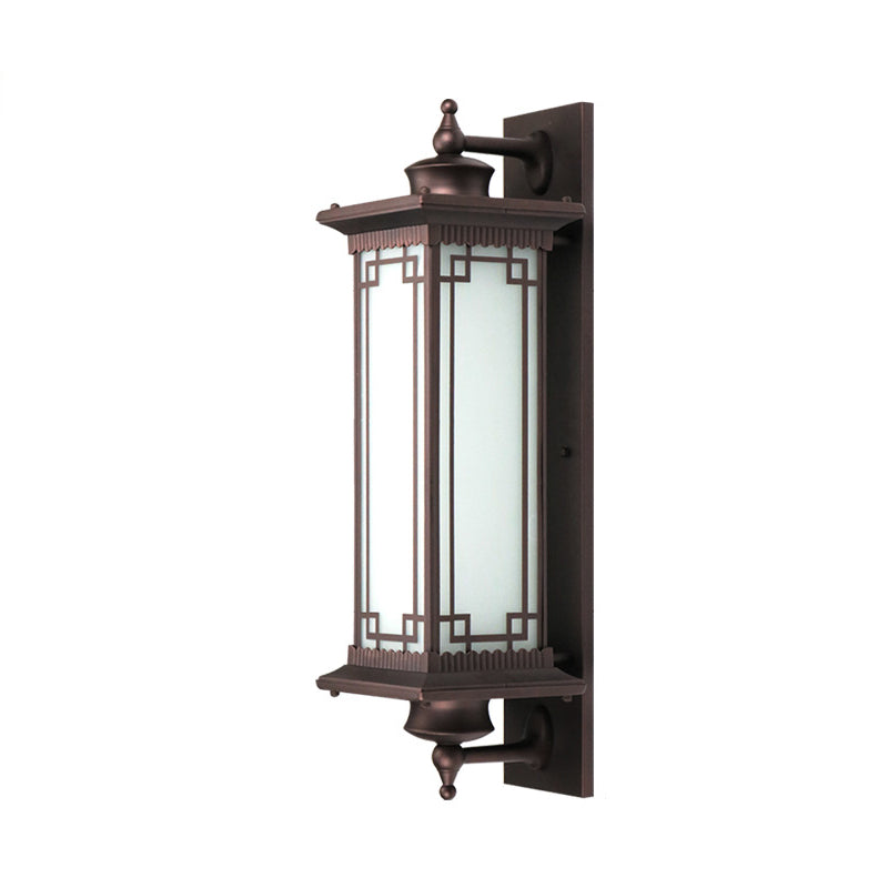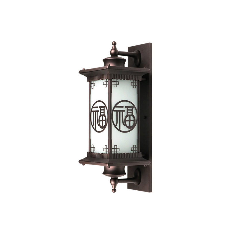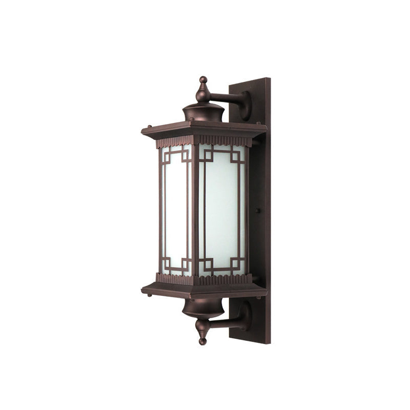 Traditional Chinese Square House Rectangle Glass Aluminum Hardware 1-Light Wall Sconce Lamp For Outdoor Patio