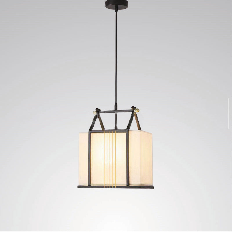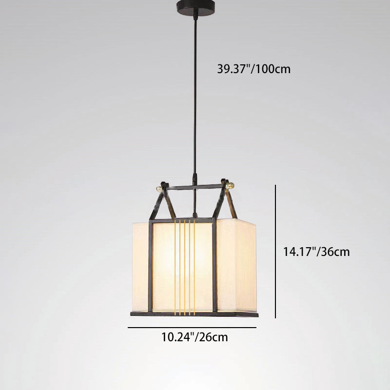 Traditional Chinese Square House Shape Fabric Iron 1-Light Pendant Light For Living Room